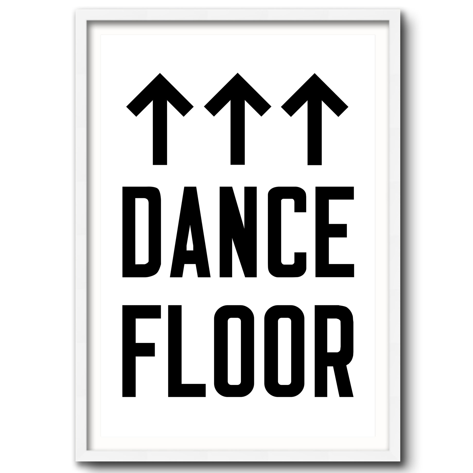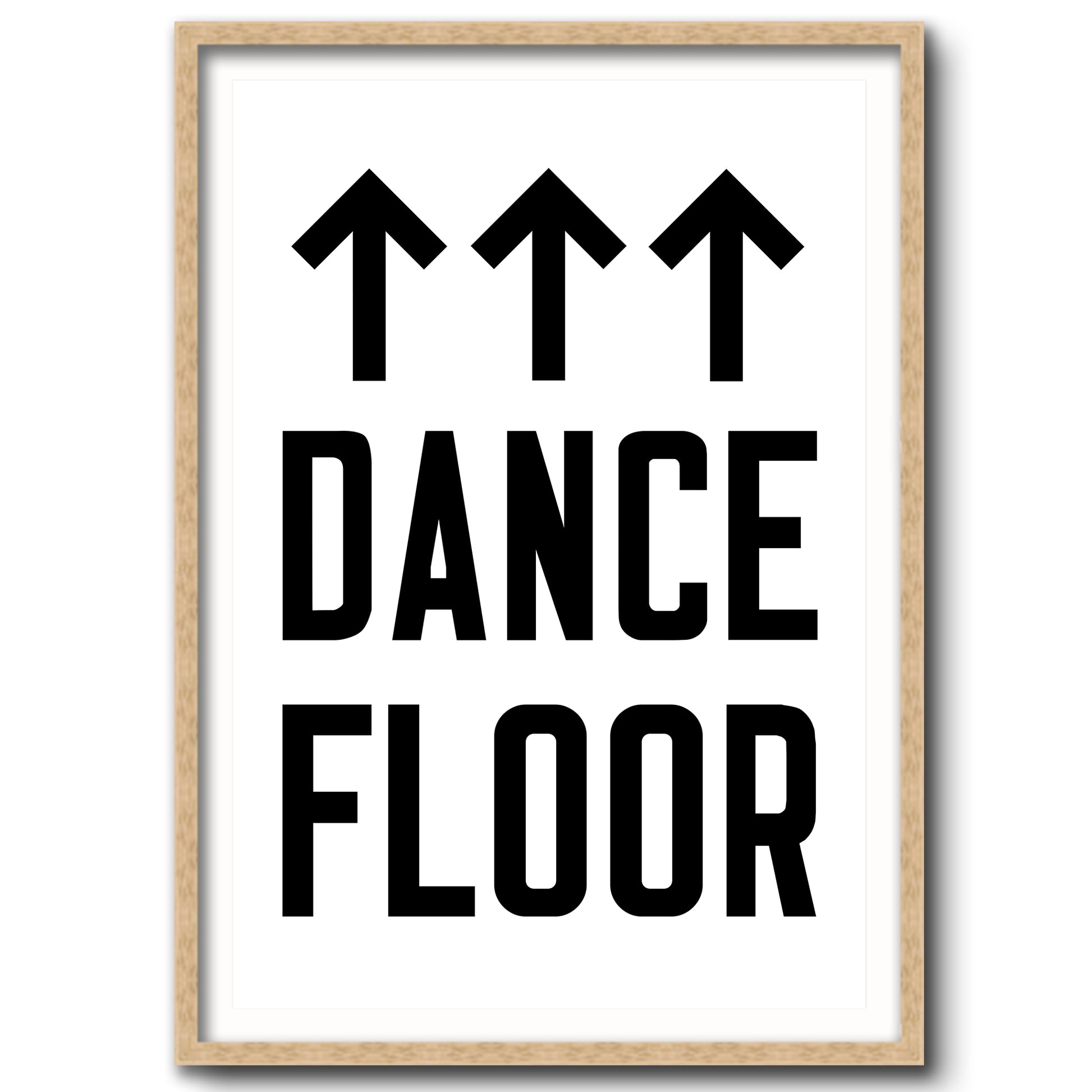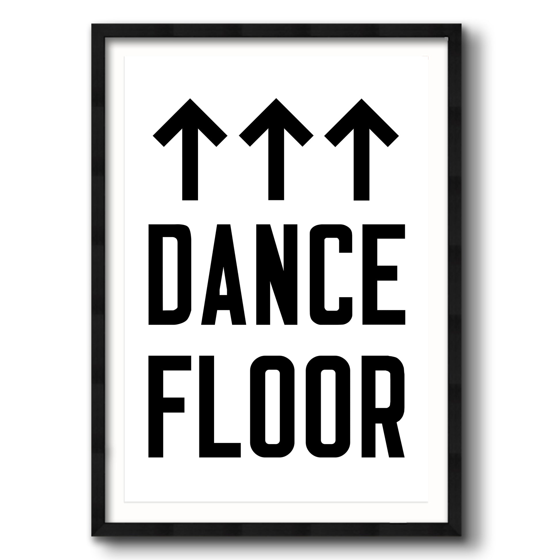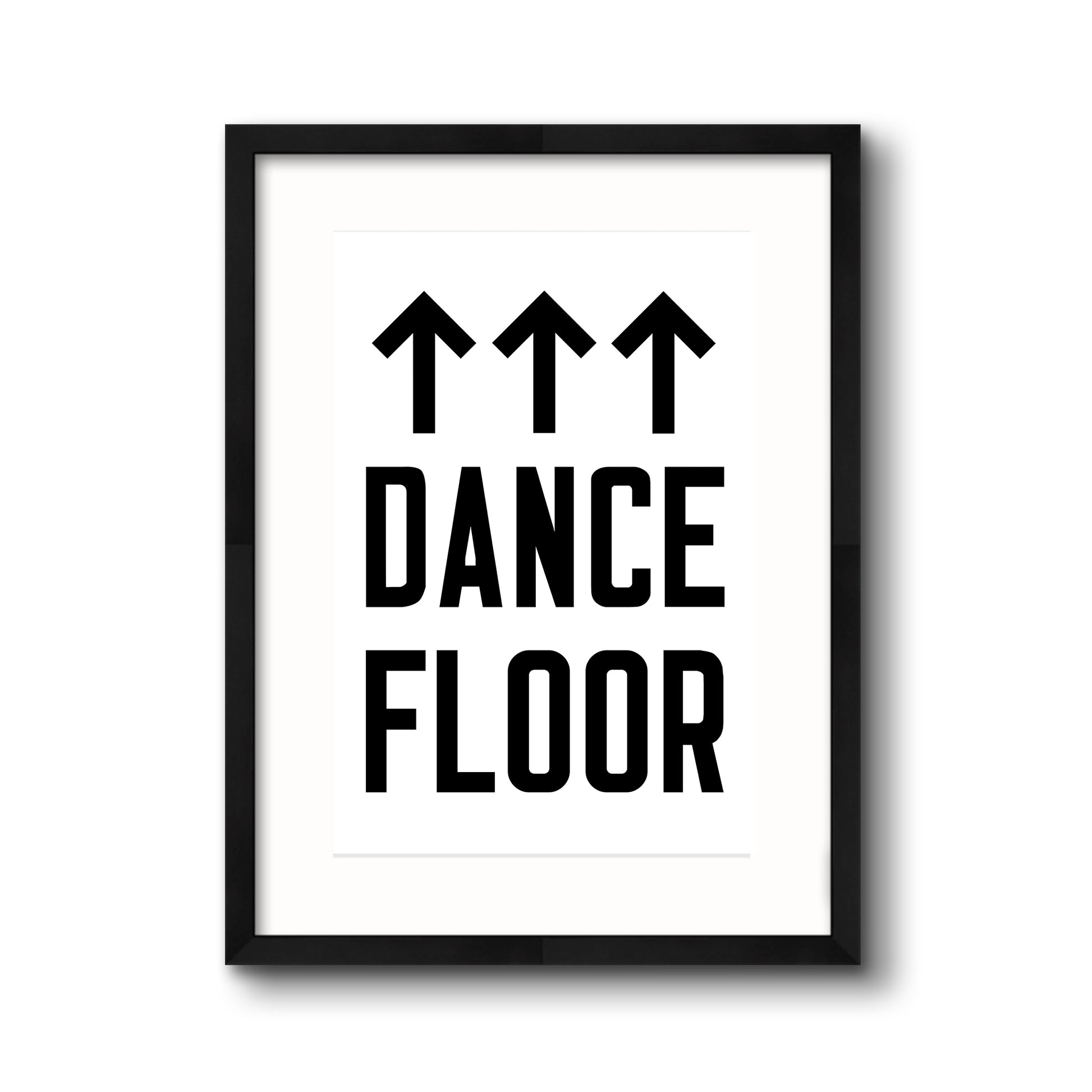 Dance Floor sign print with arrows pointing up. Liven up your boring walls and encourage good vibes with this fun & playful typography art.