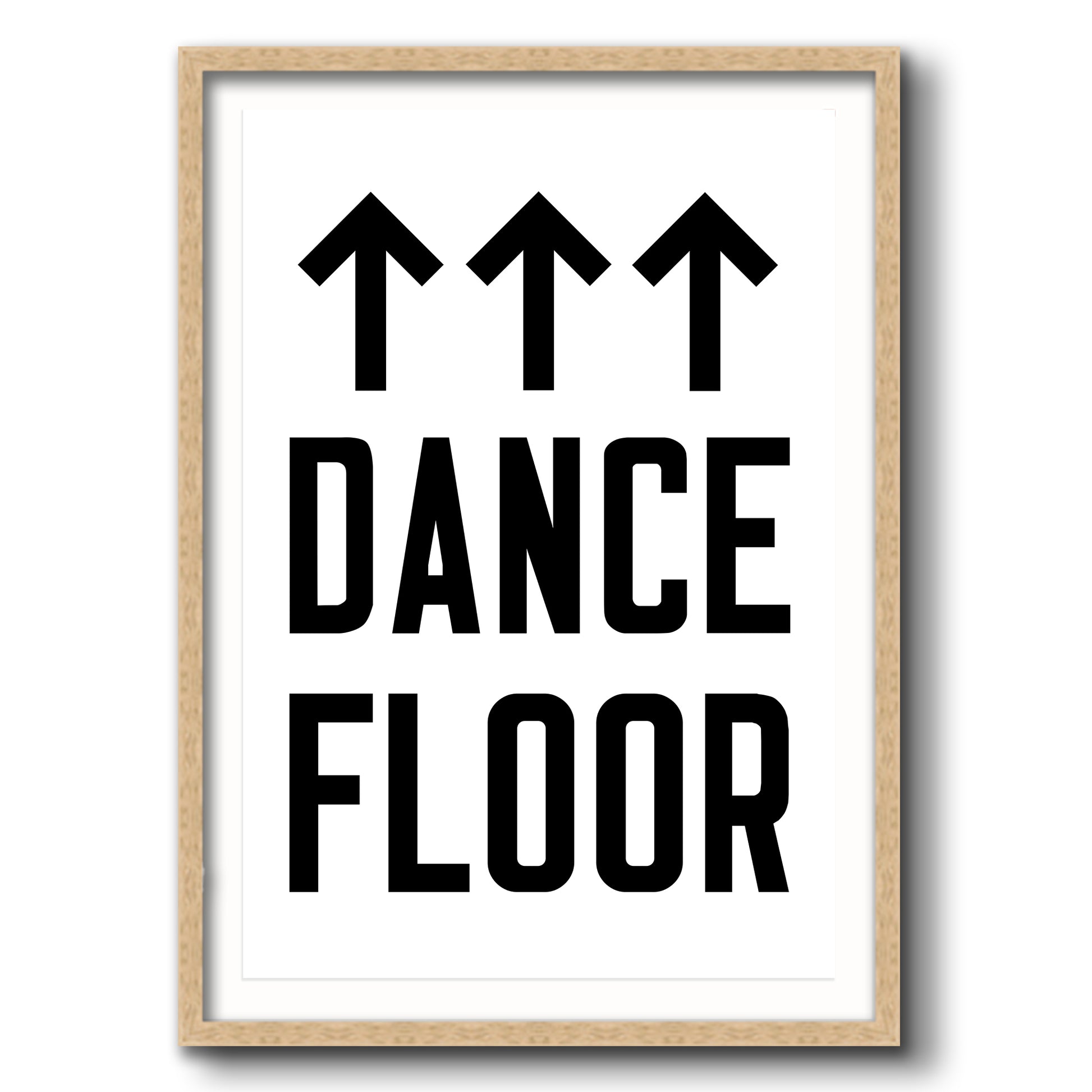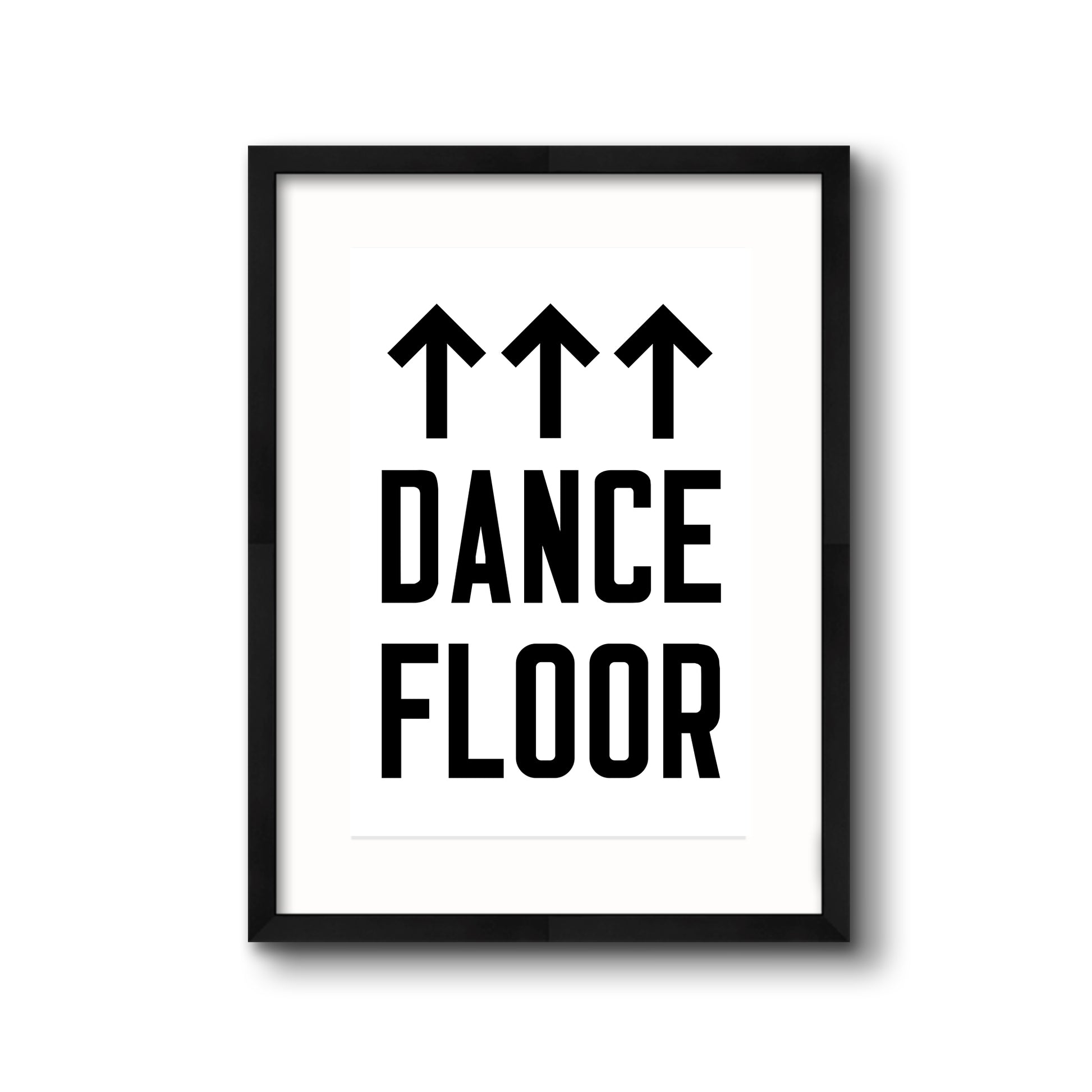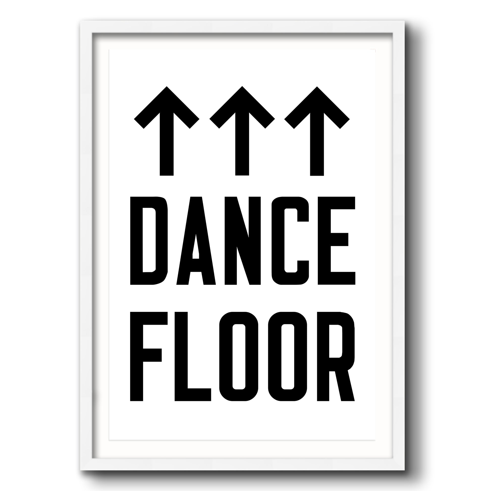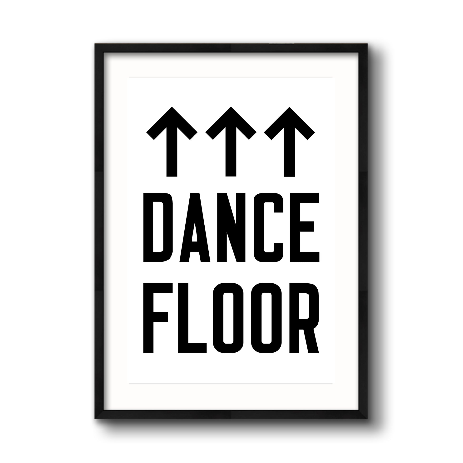 Dance Floor sign print with arrows pointing up. Liven up your boring walls and encourage good vibes with this fun & playful typography art.