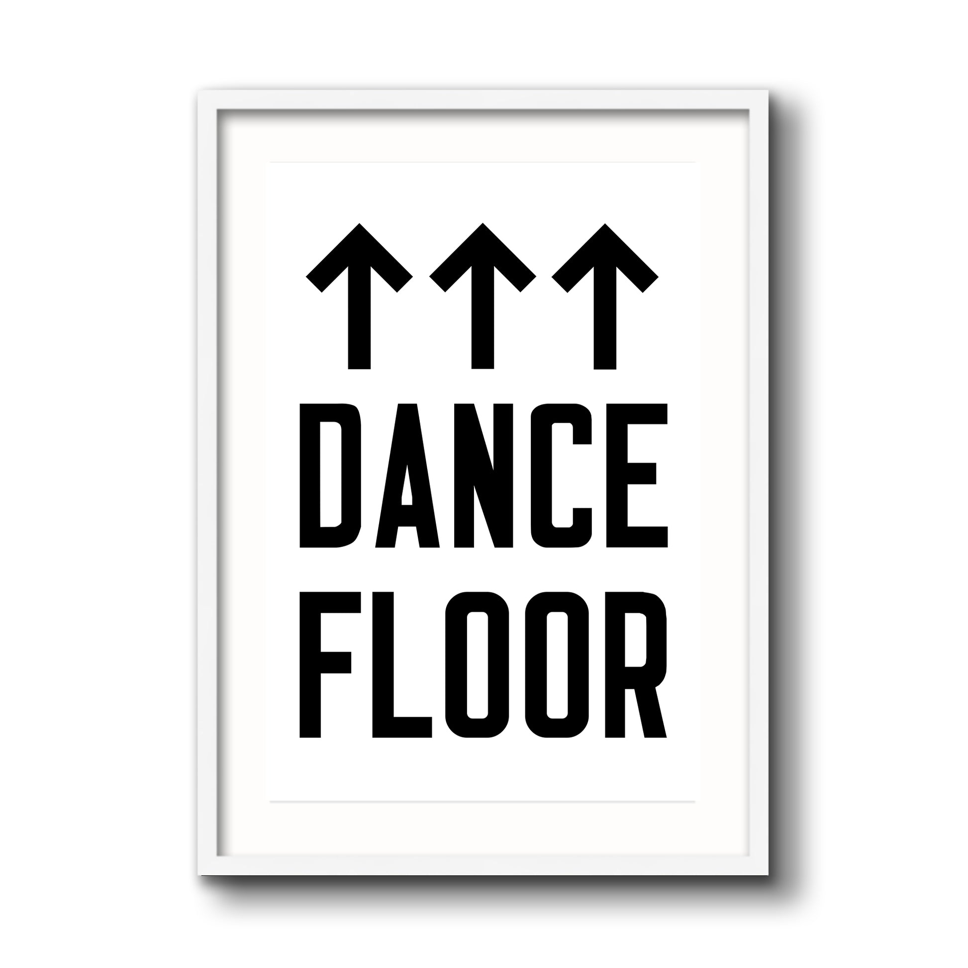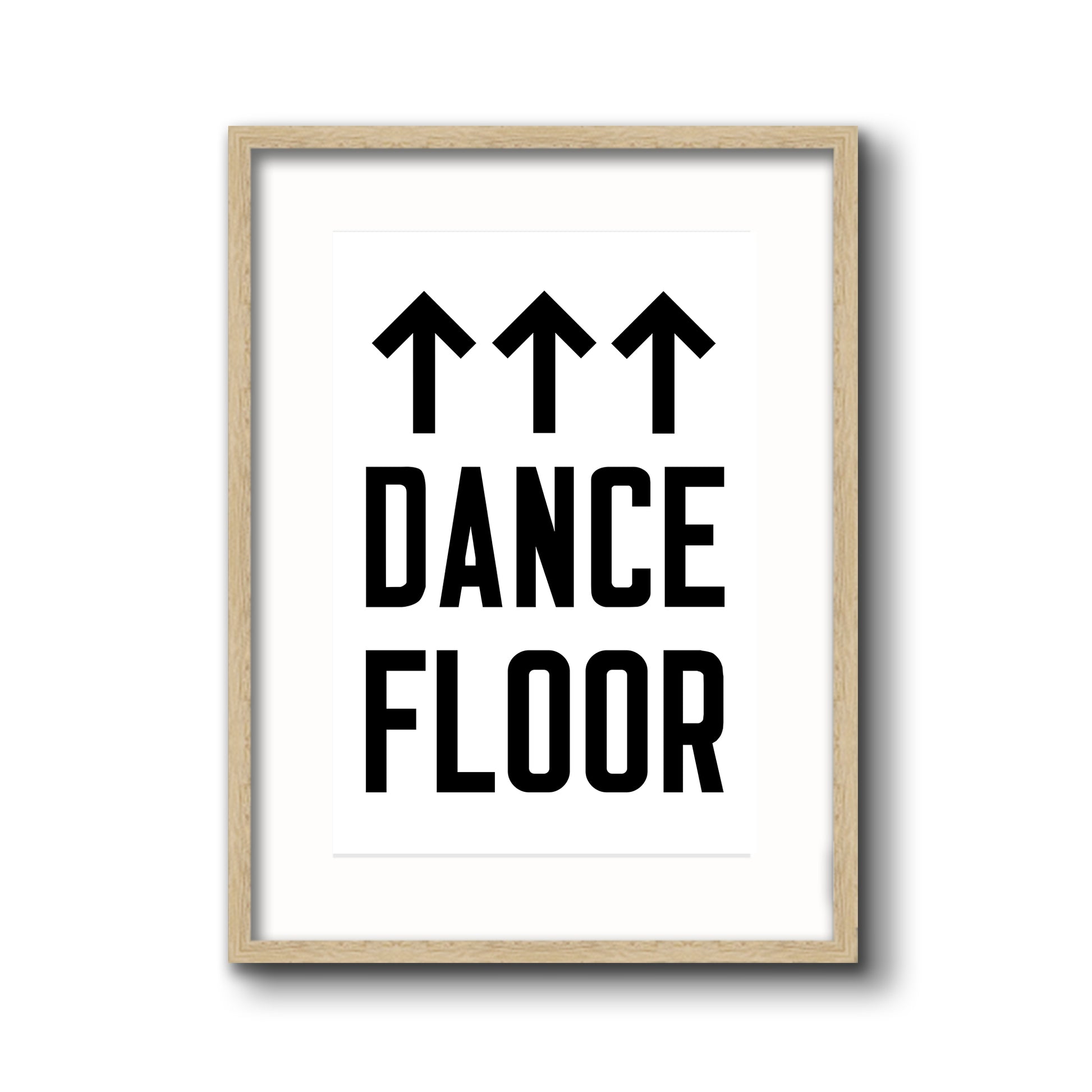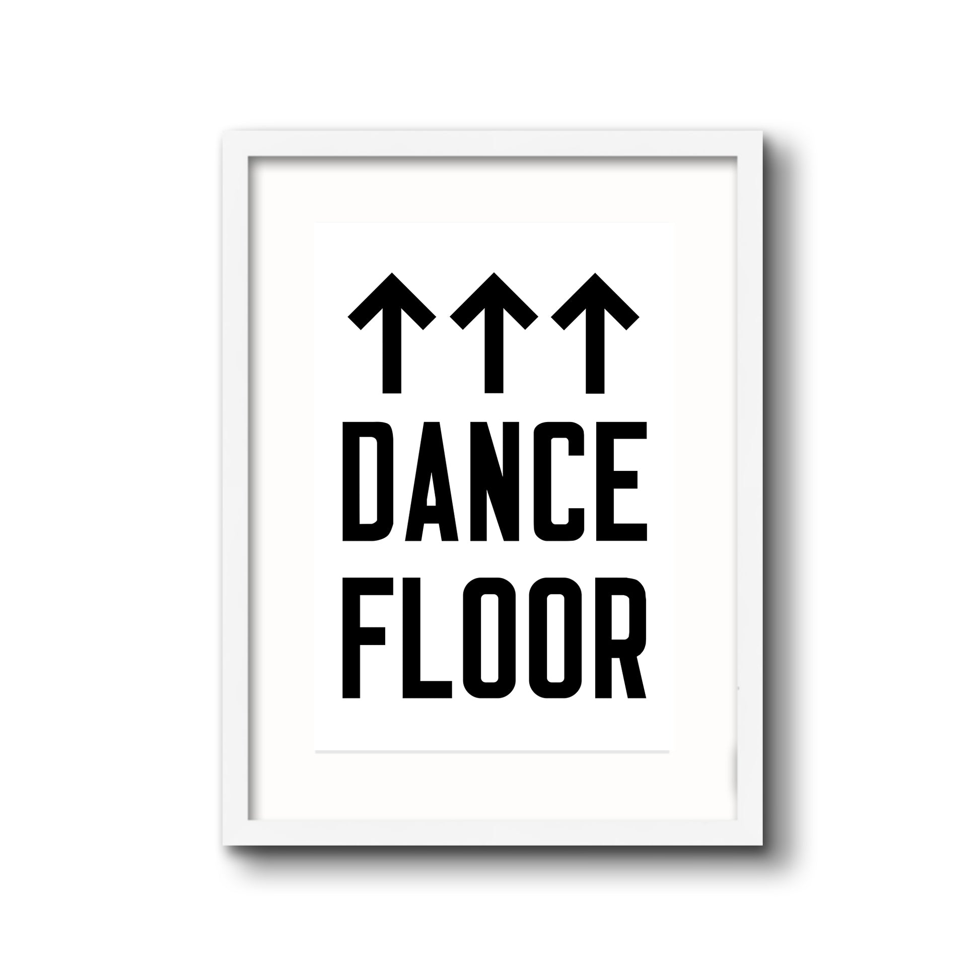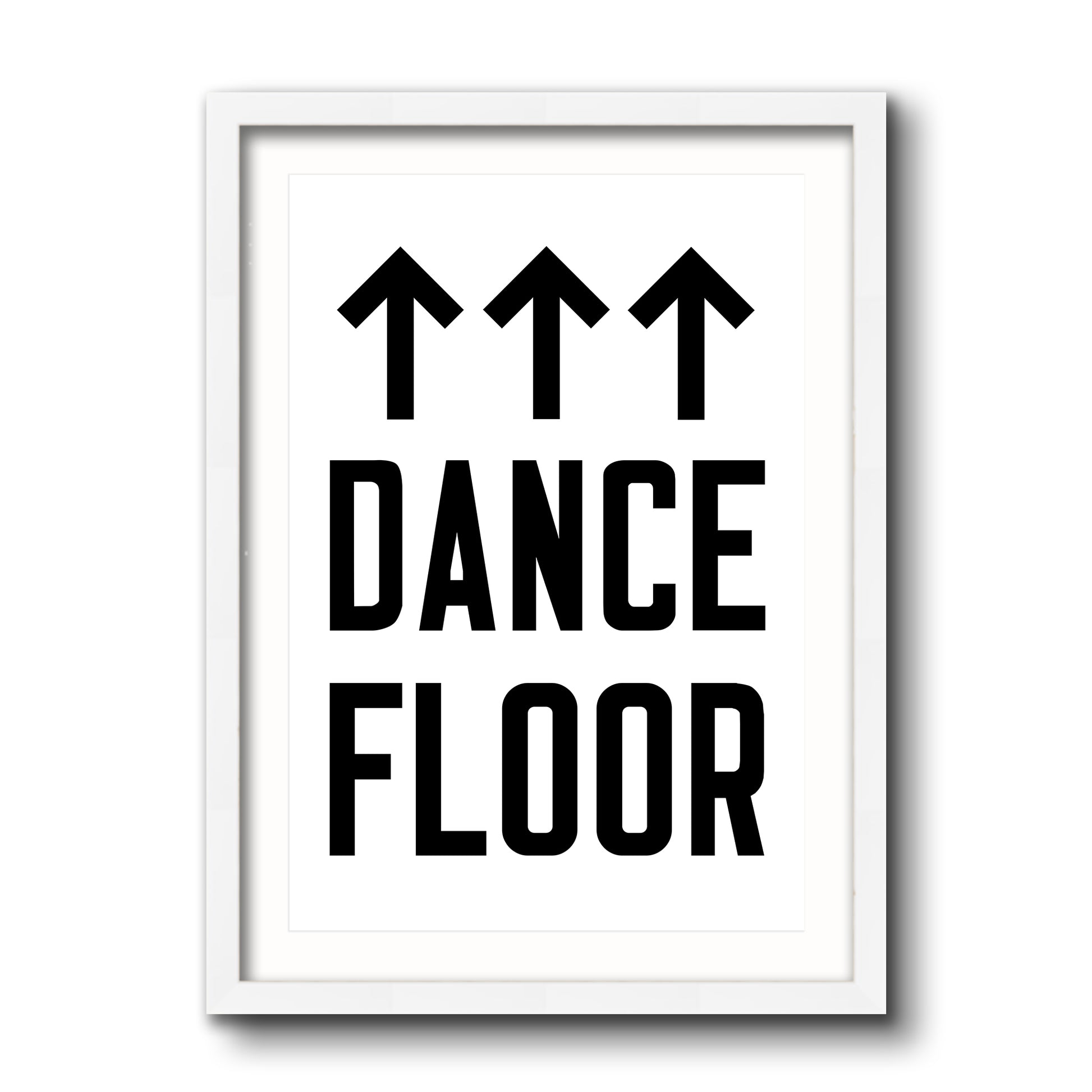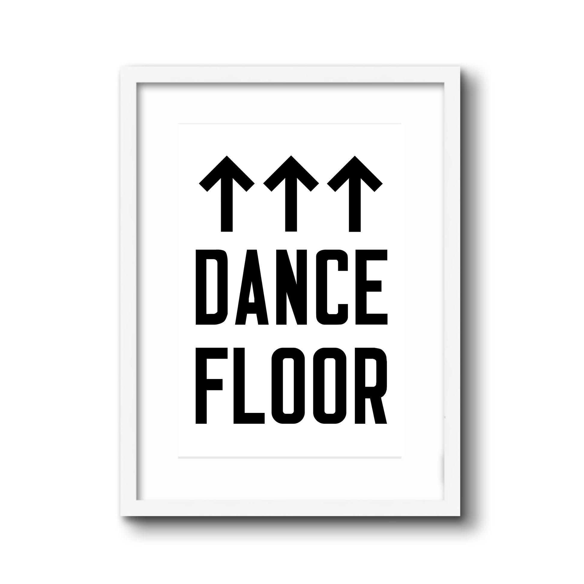 Dance Floor sign print with arrows pointing up. Liven up your boring walls and encourage good vibes with this fun & playful typography art.