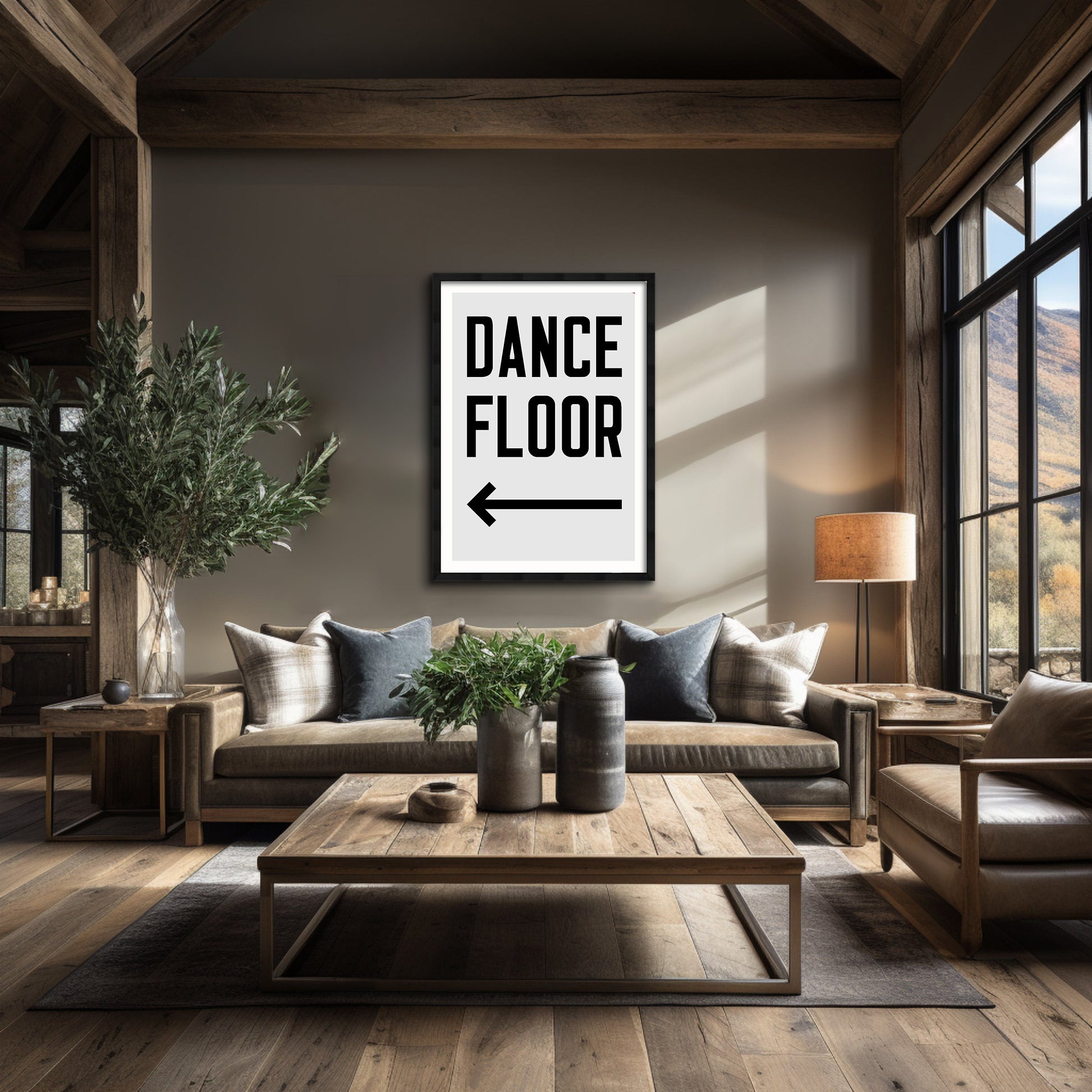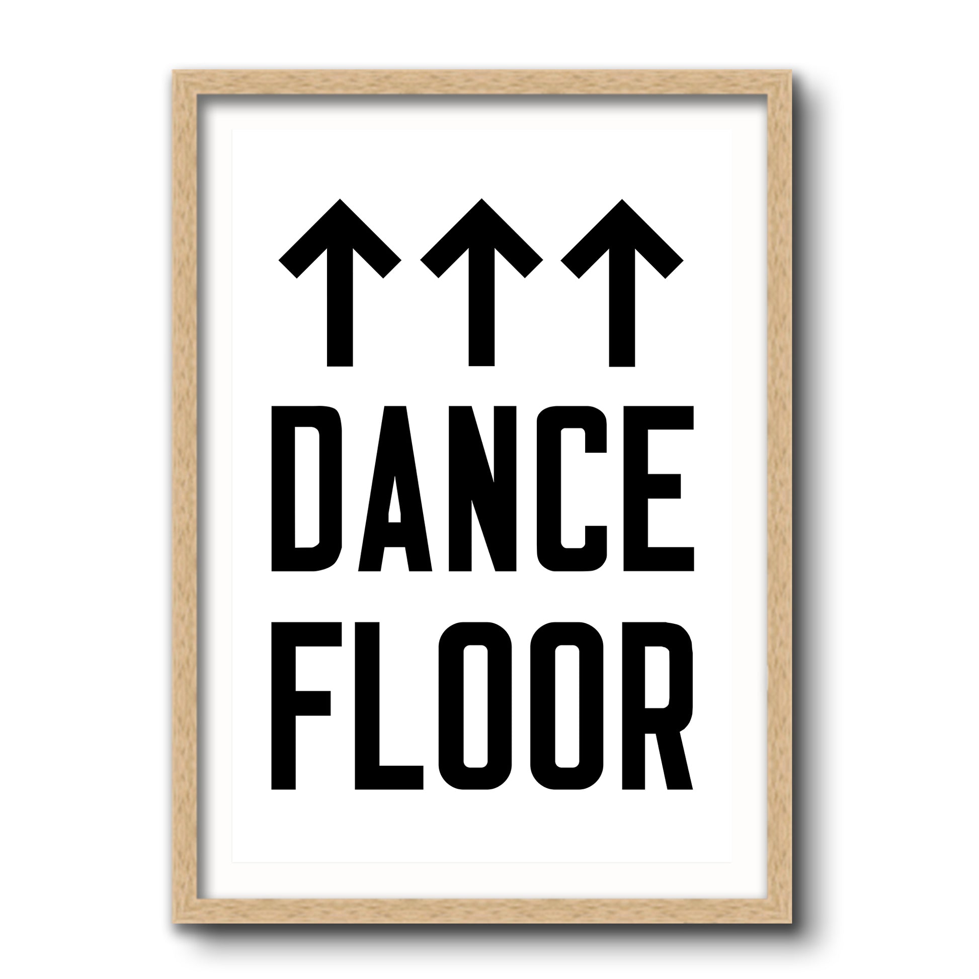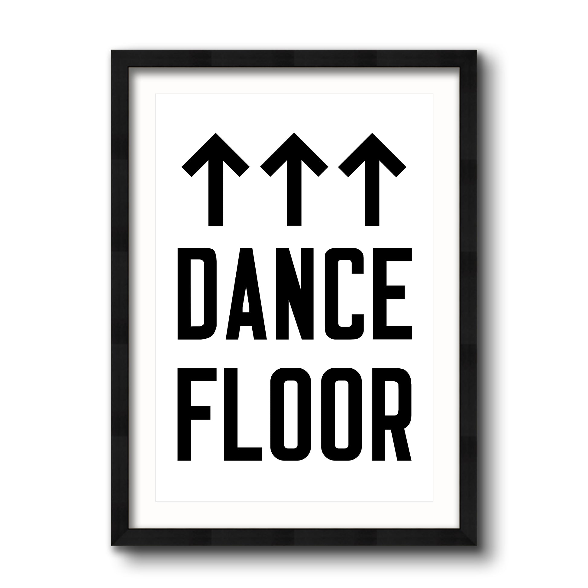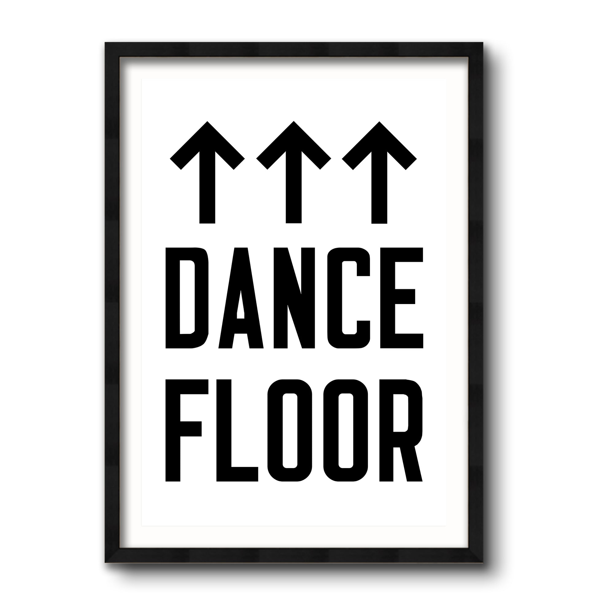 Dance Floor sign print with arrows pointing up. Liven up your boring walls and encourage good vibes with this fun & playful typography art.