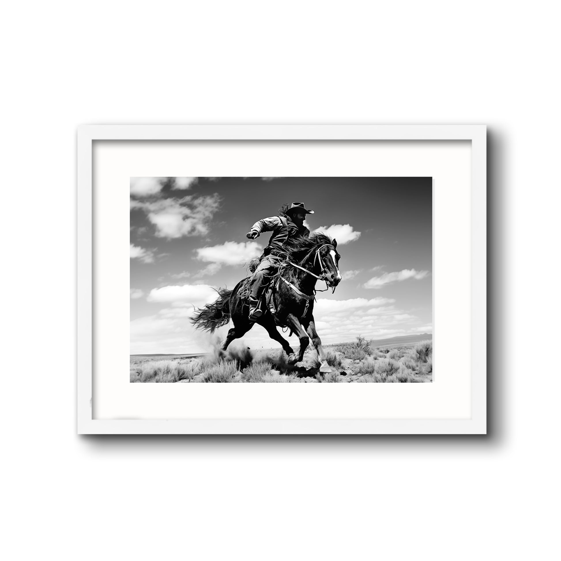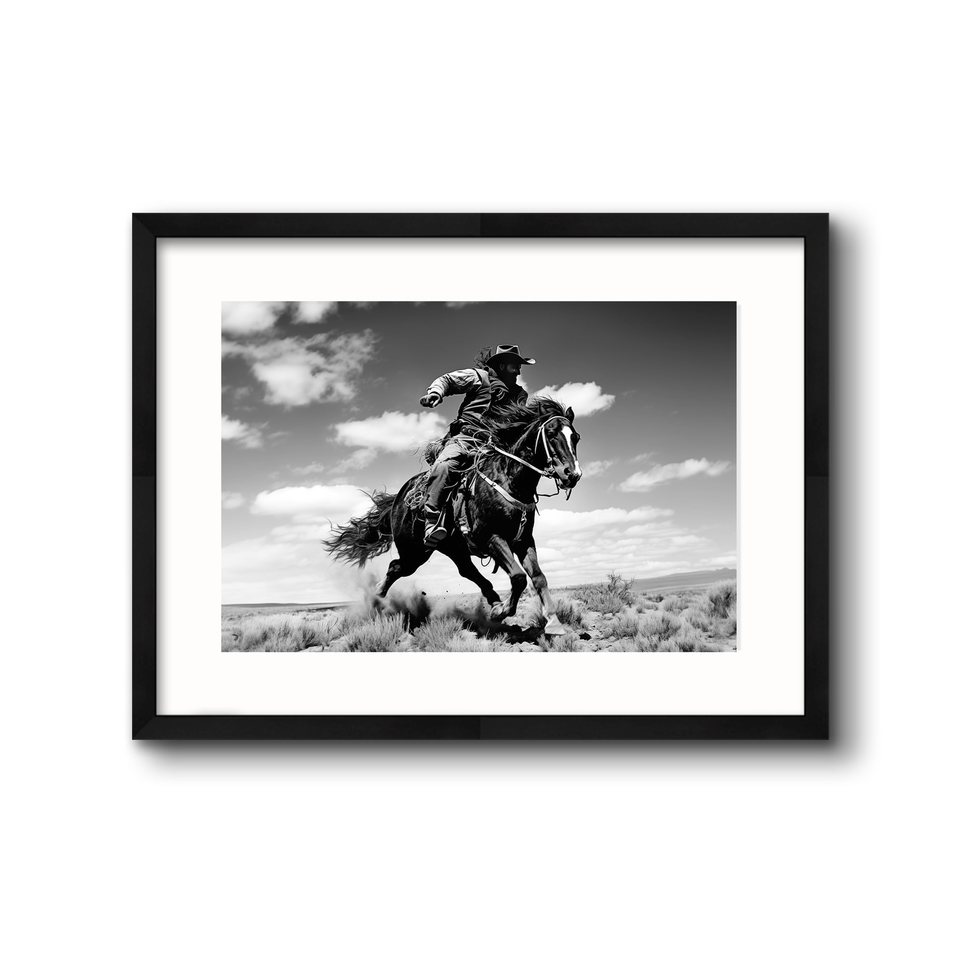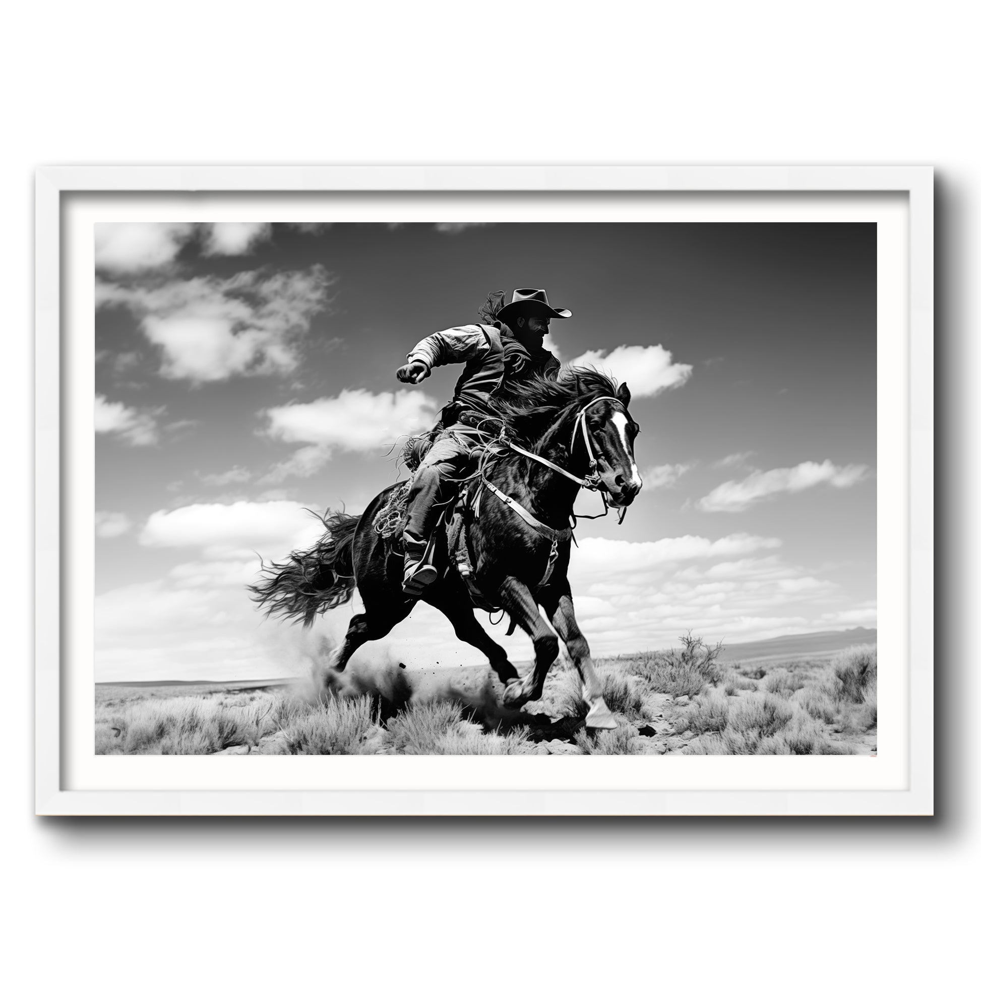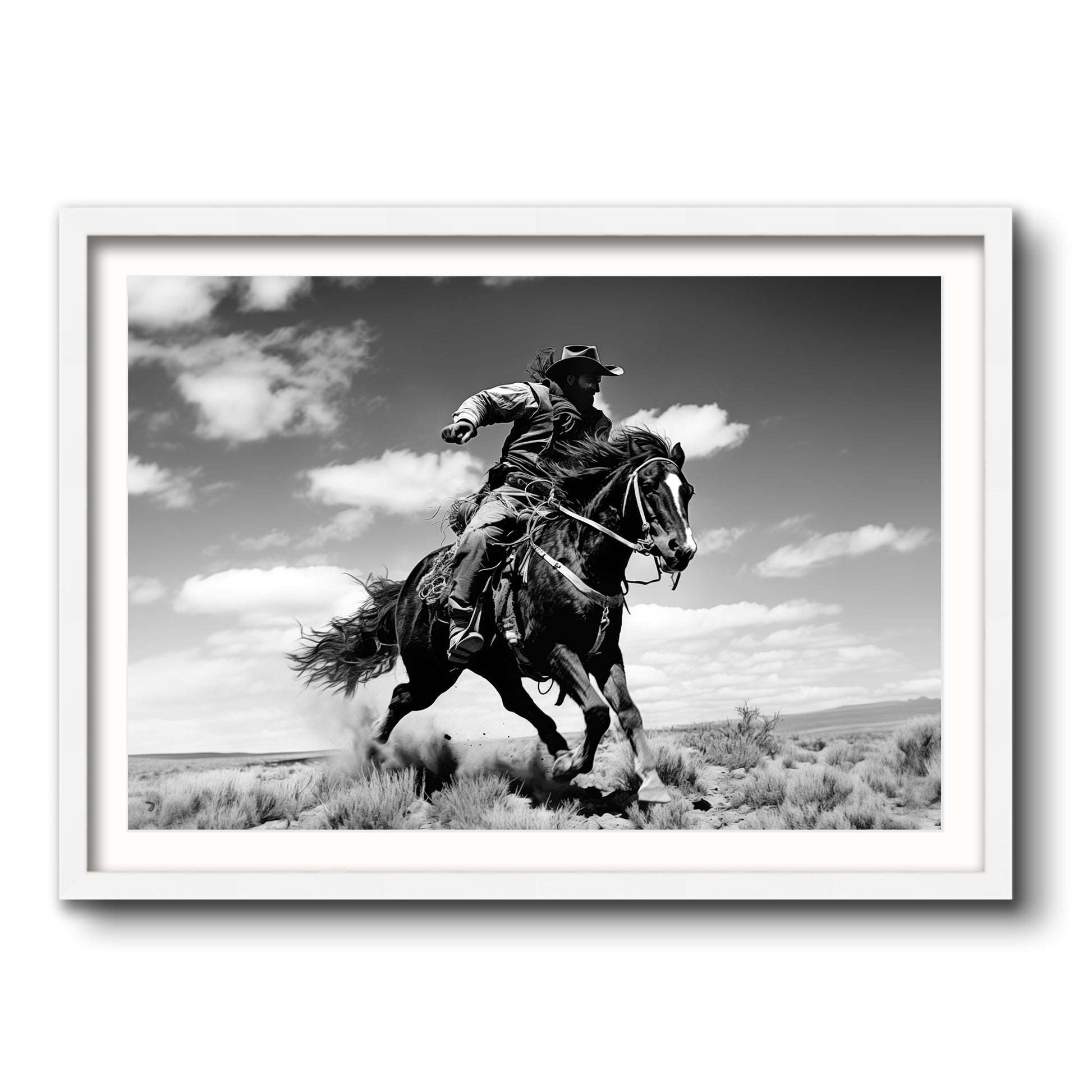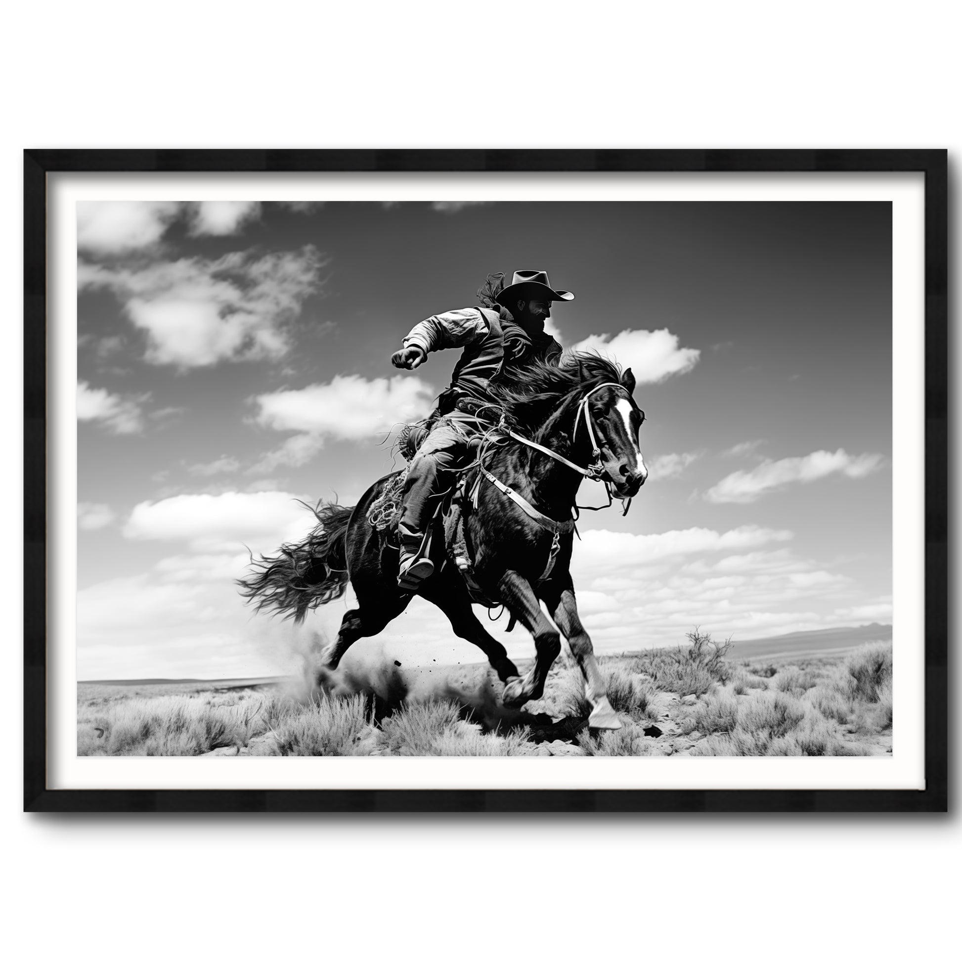 In the heart of Montana, where the mountains touch the sky, A wild cowboy rides, under the western sun's fierce eye. On a bucking bronco, with mane like wildfire ablaze, He tames the untamed, as in those rugged, old wild-west days.