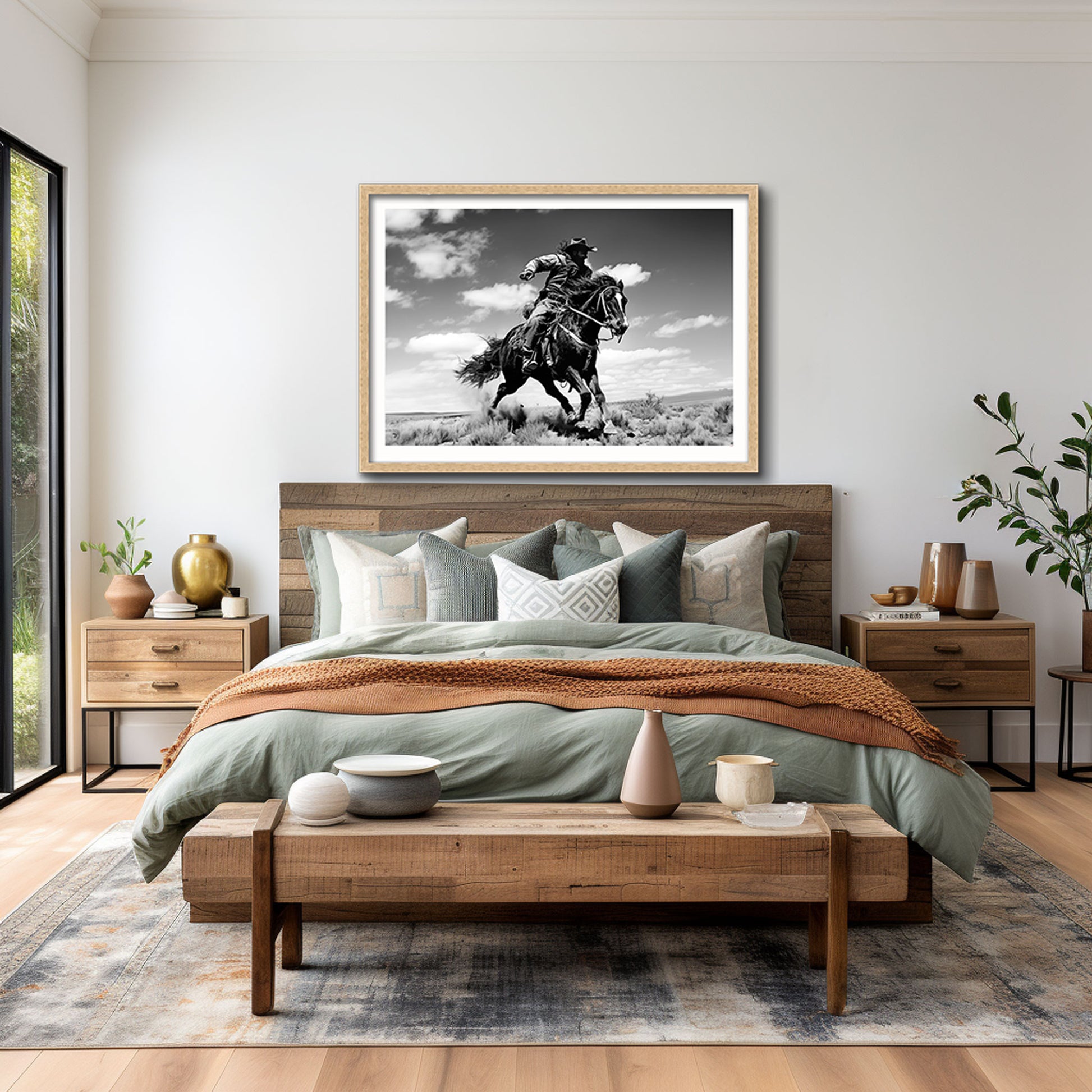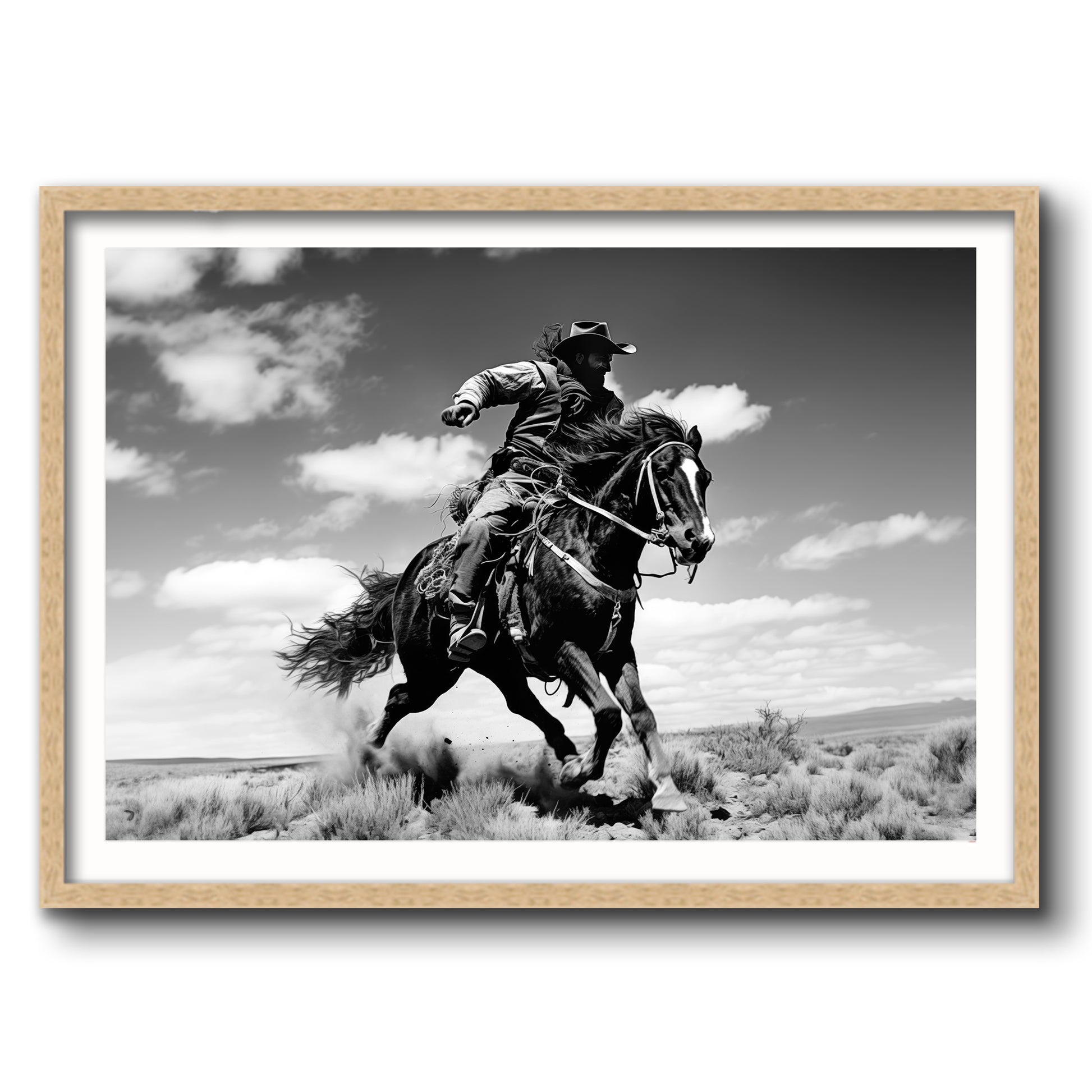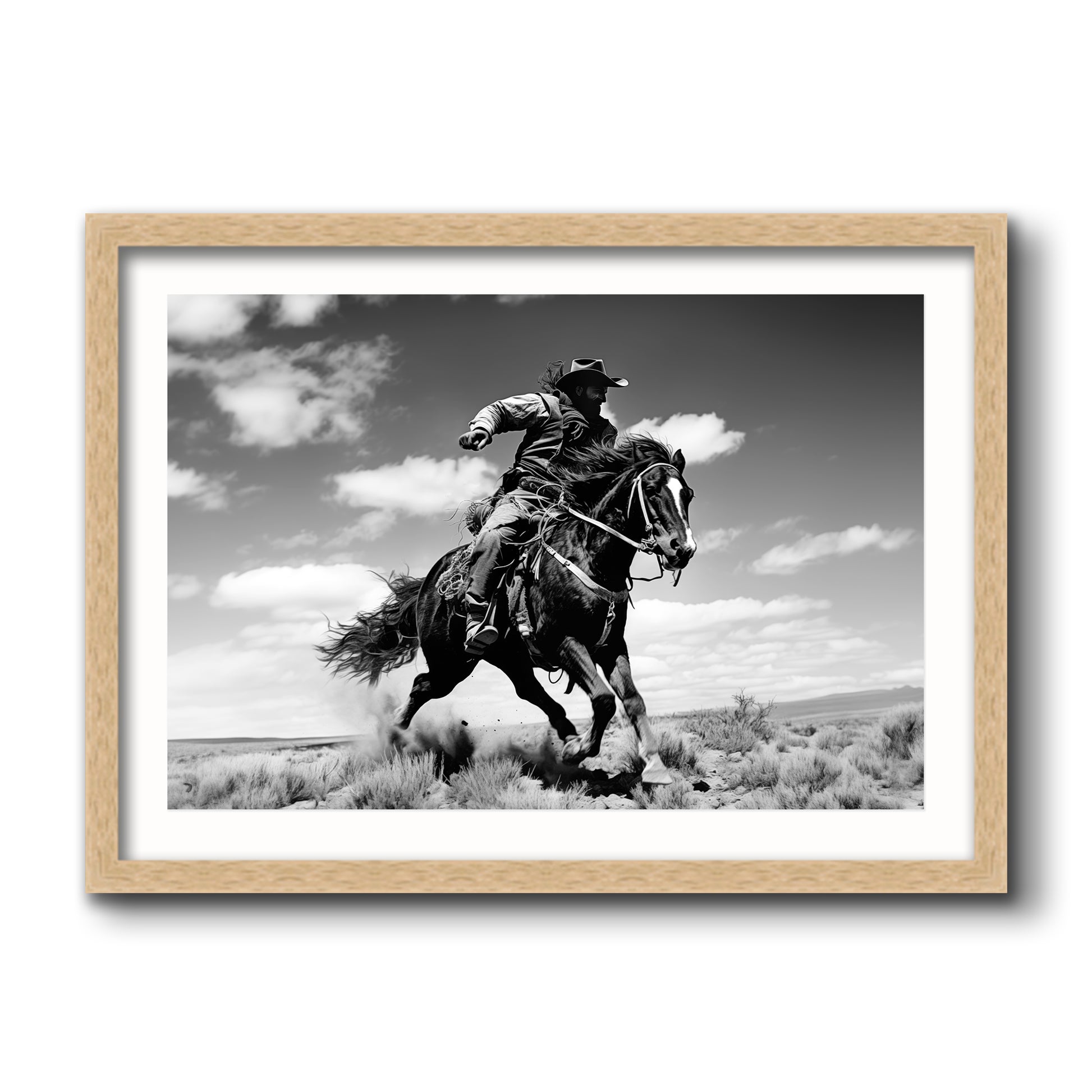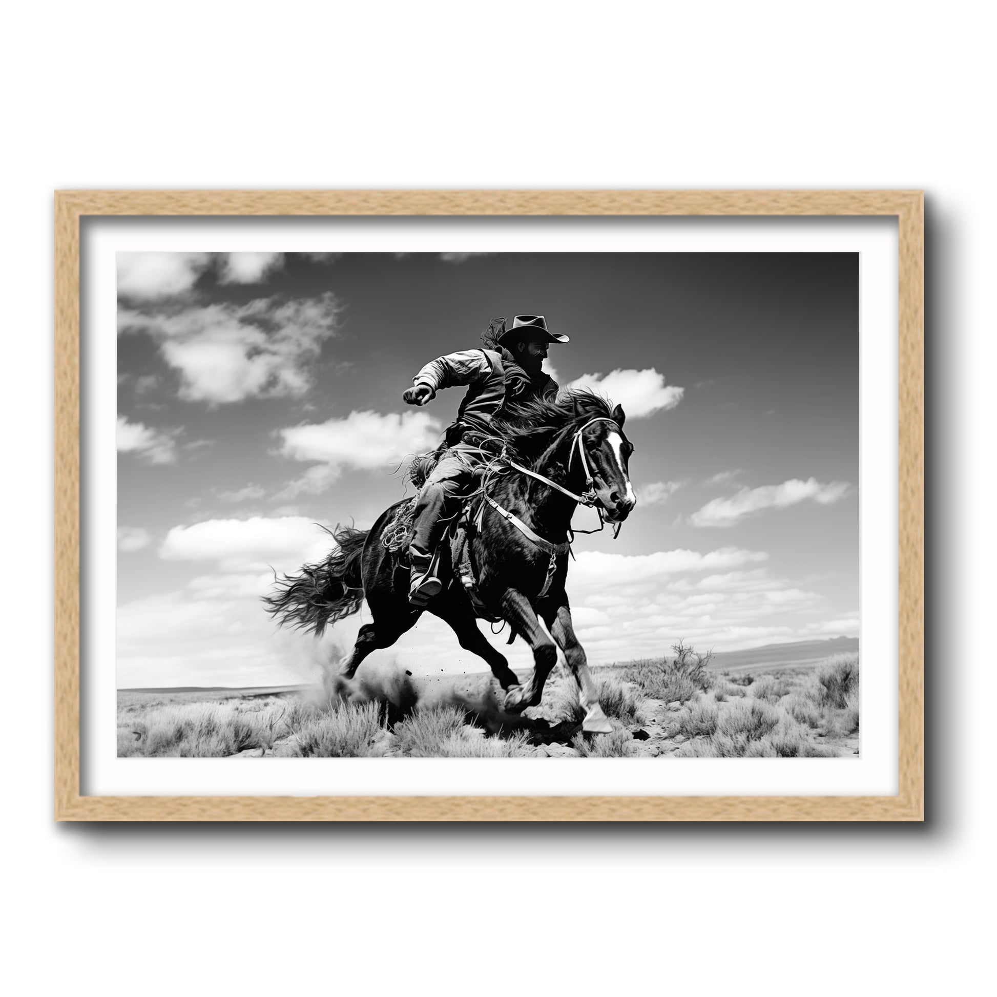 In the heart of Montana, where the mountains touch the sky, A wild cowboy rides, under the western sun's fierce eye. On a bucking bronco, with mane like wildfire ablaze, He tames the untamed, as in those rugged, old wild-west days.