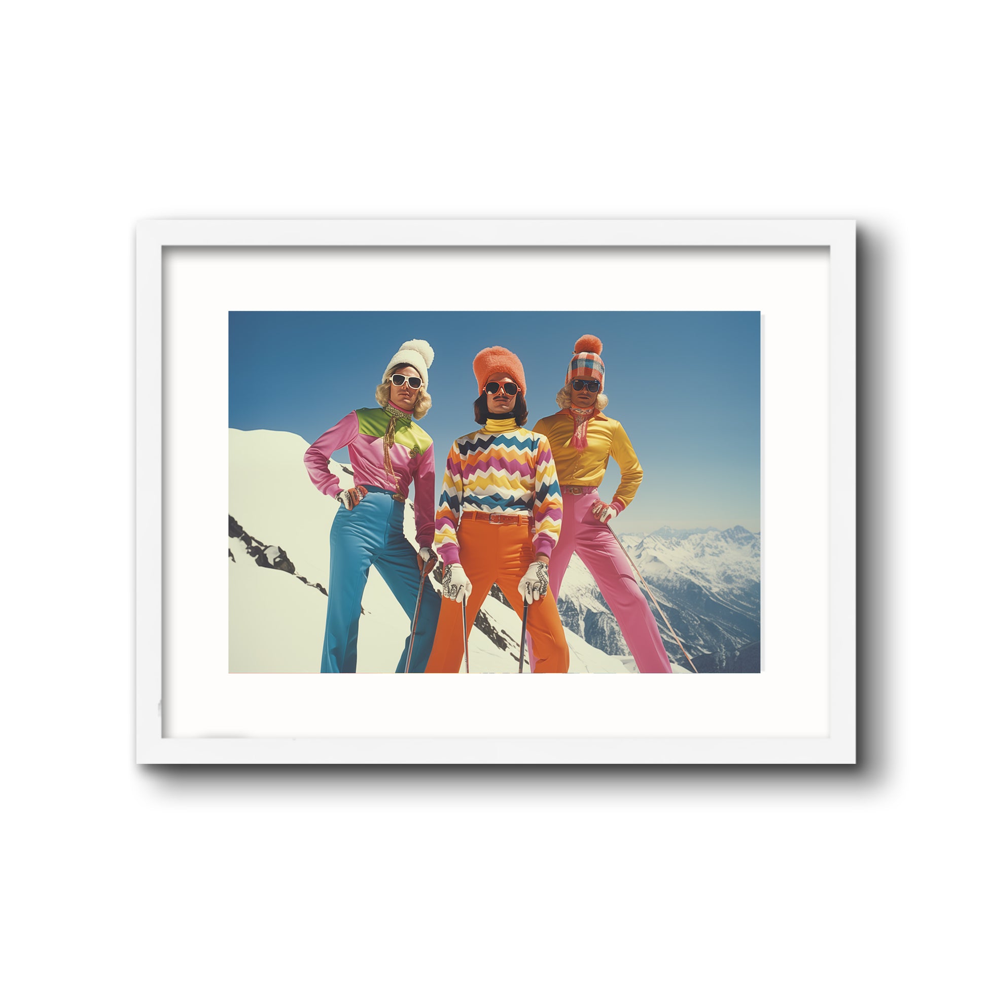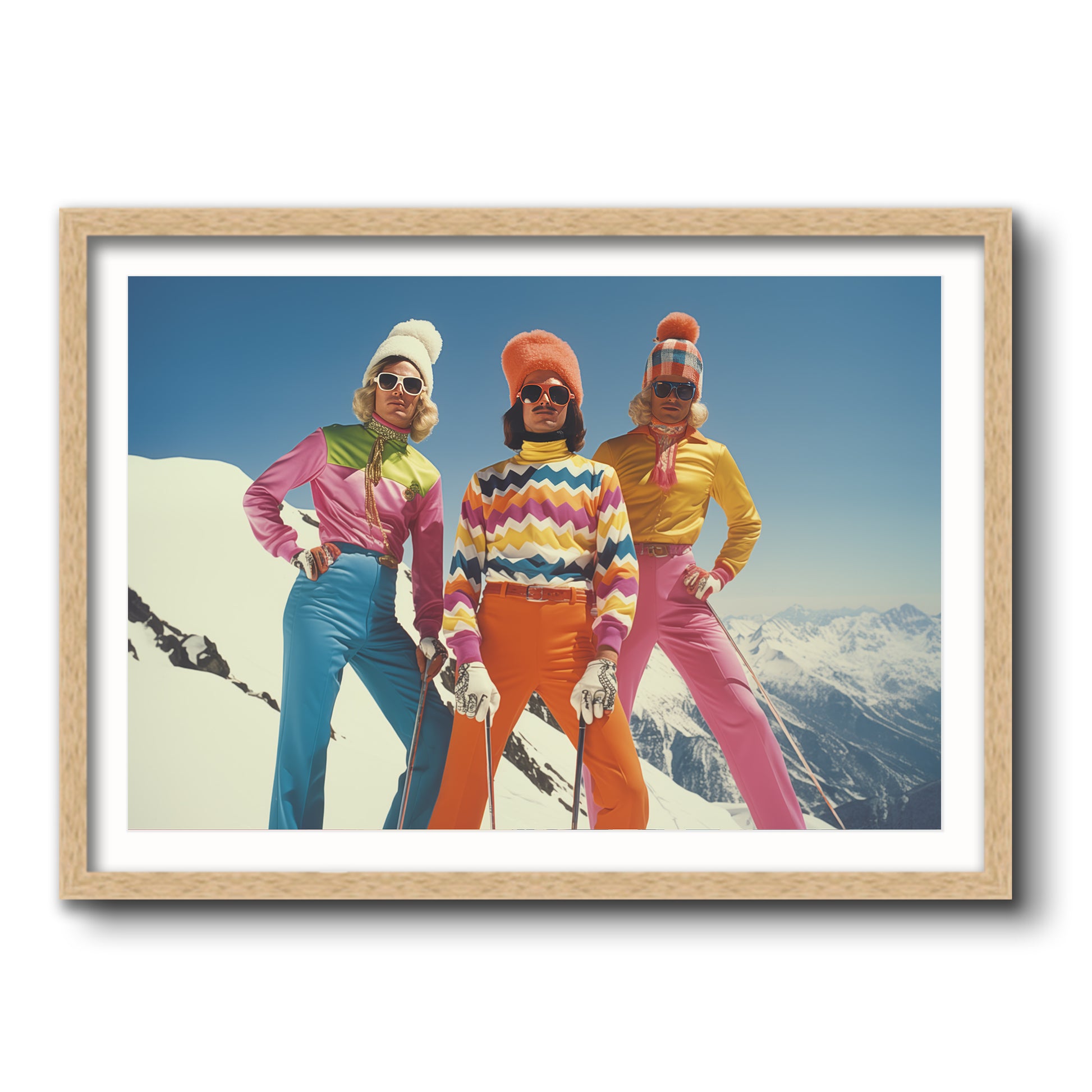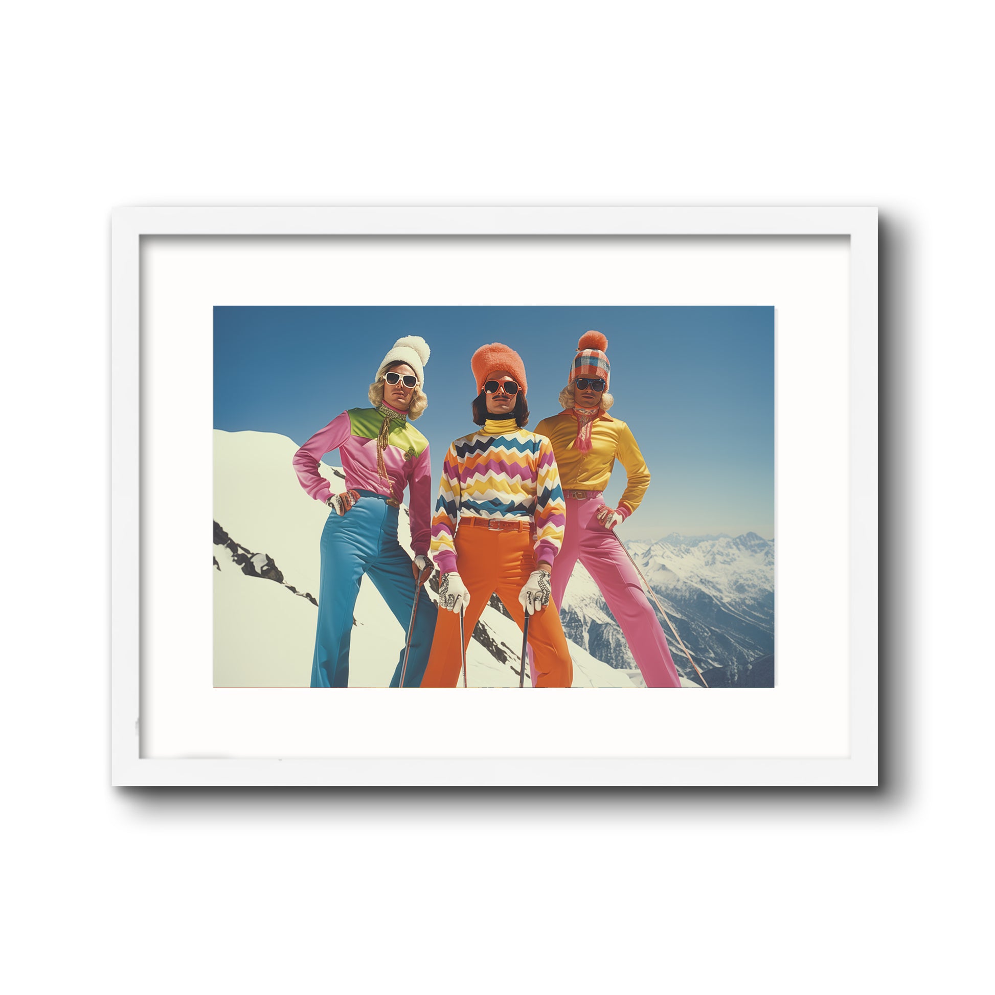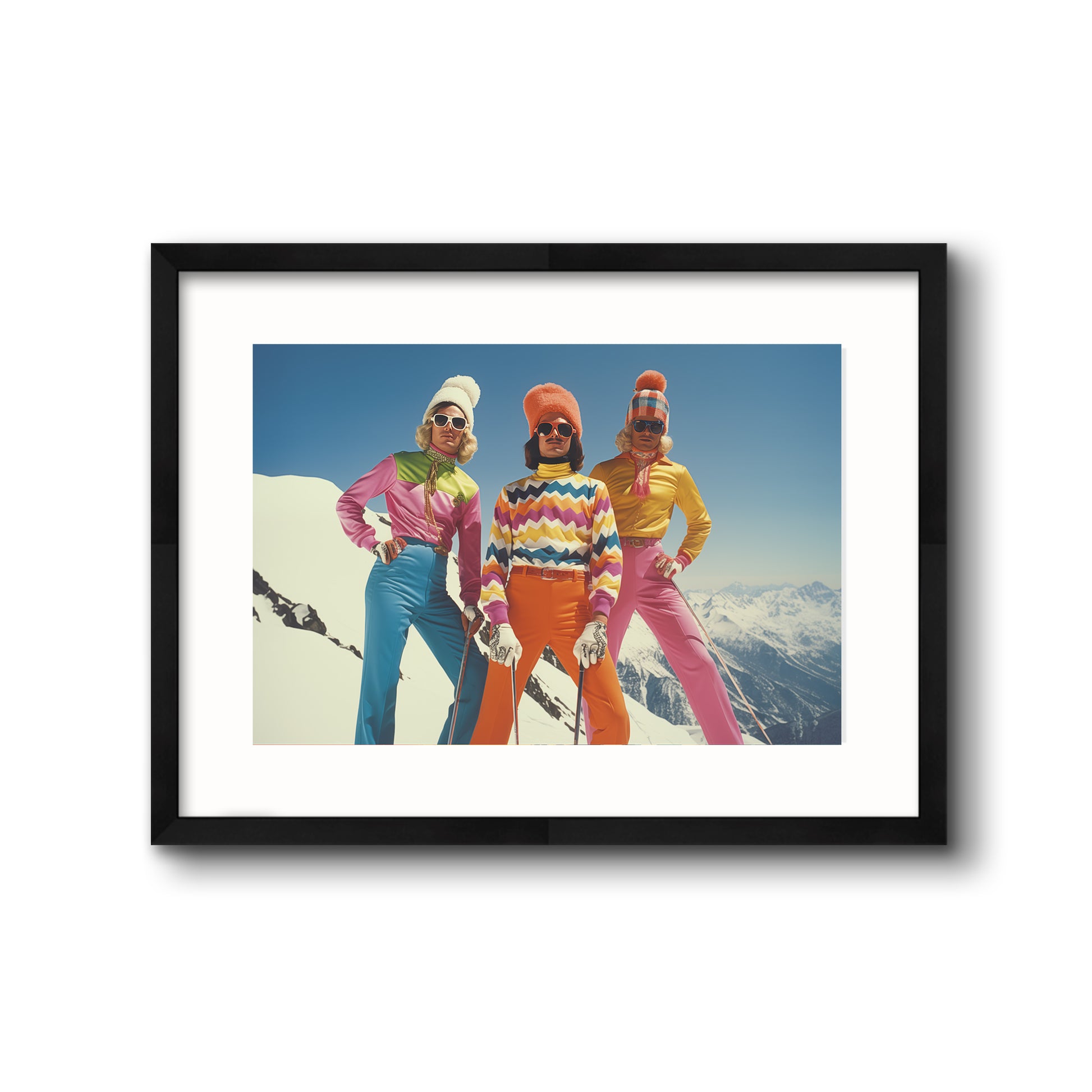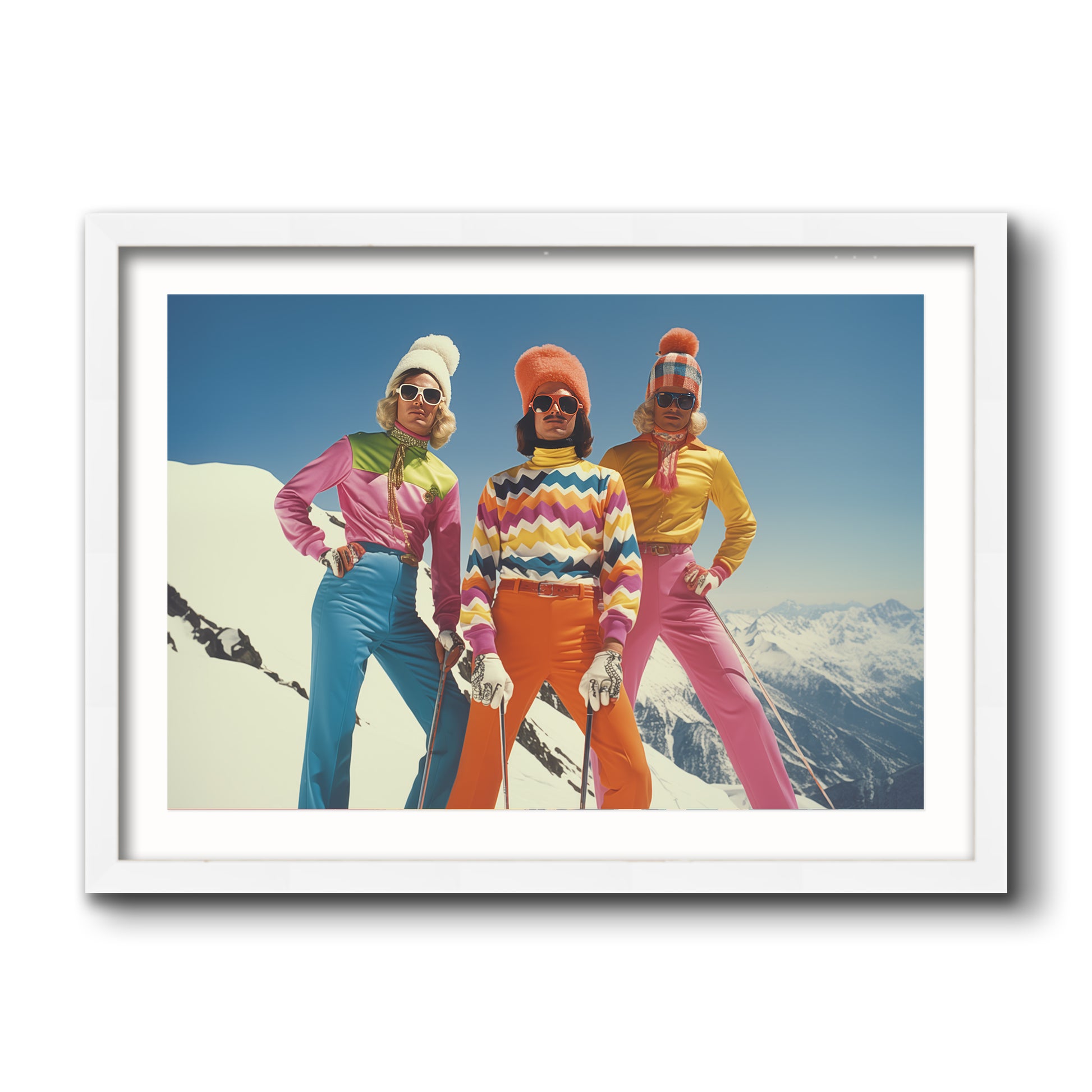 Raise a toast to those glamorous days gone by. In the days of disco and 'Here Comes the Sun' on the radio, three stylish daredevils glide down the slopes, in a rhythmic Bee Gees flow. Skiing in Jackson Hole, in the '70s, pure gold...