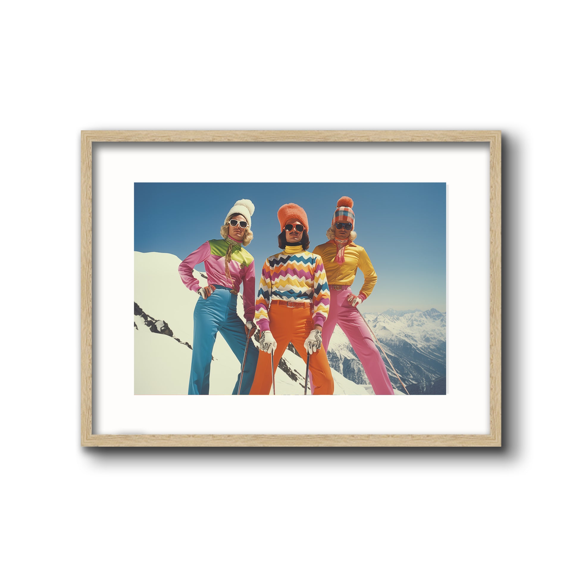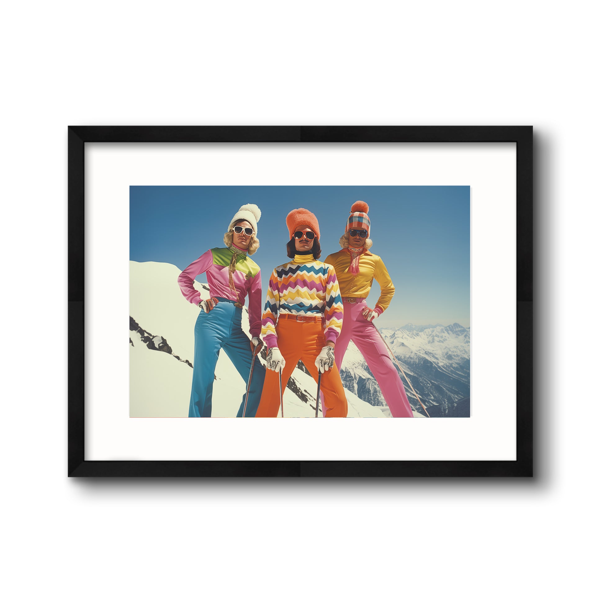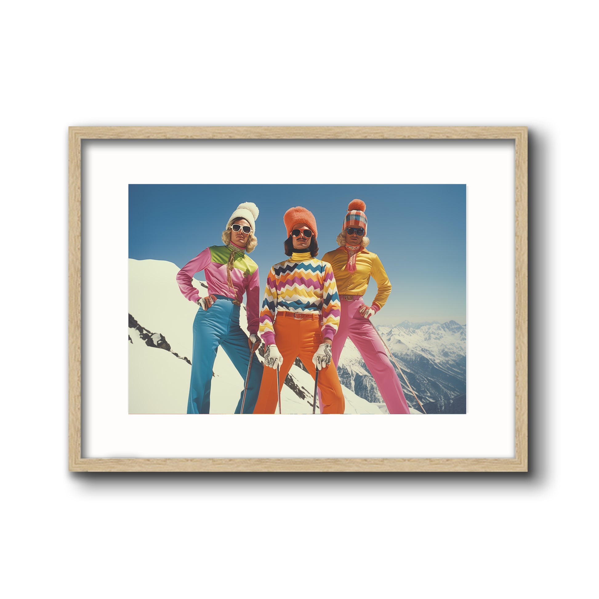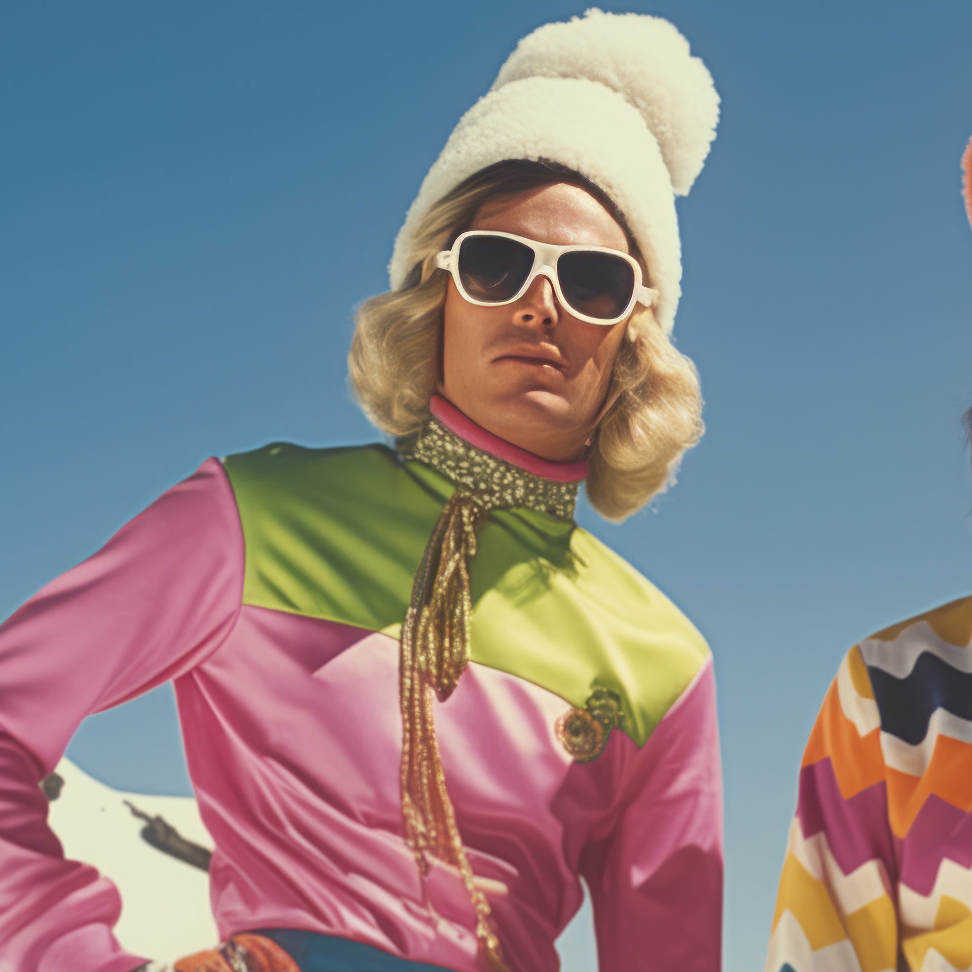 Raise a toast to those glamorous days gone by. In the days of disco and 'Here Comes the Sun' on the radio, three stylish daredevils glide down the slopes, in a rhythmic Bee Gees flow. Skiing in Jackson Hole, in the '70s, pure gold...