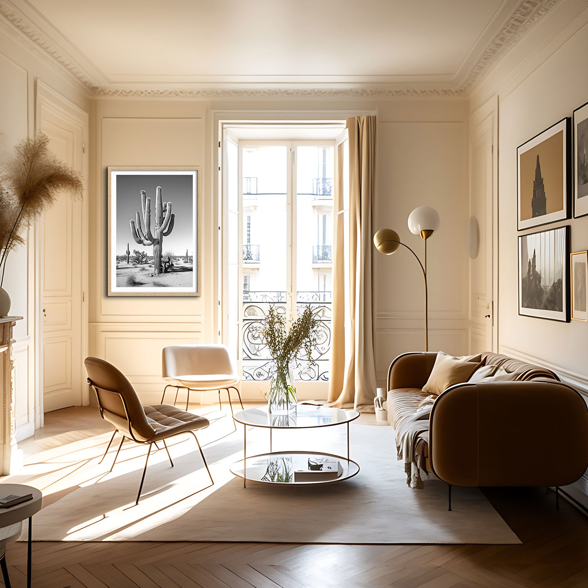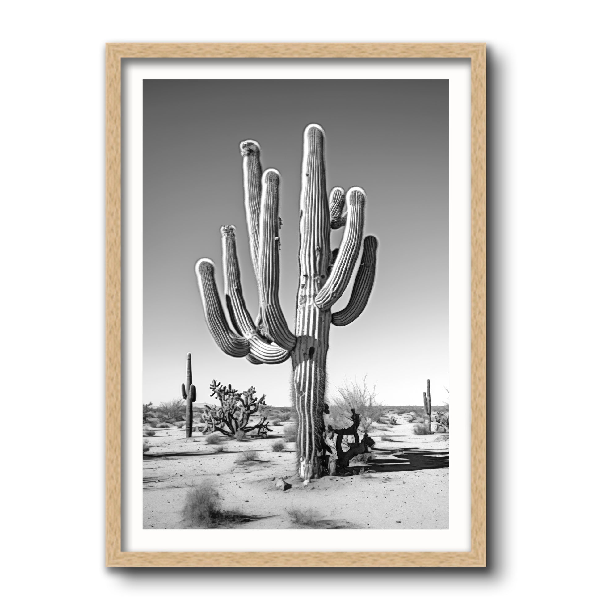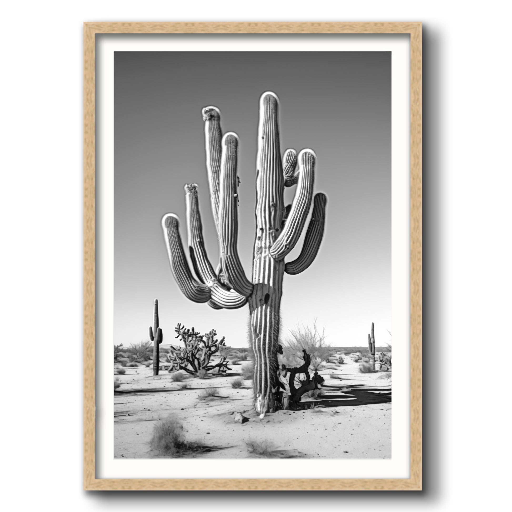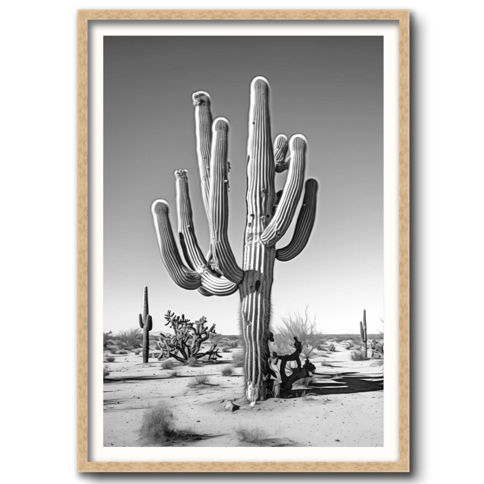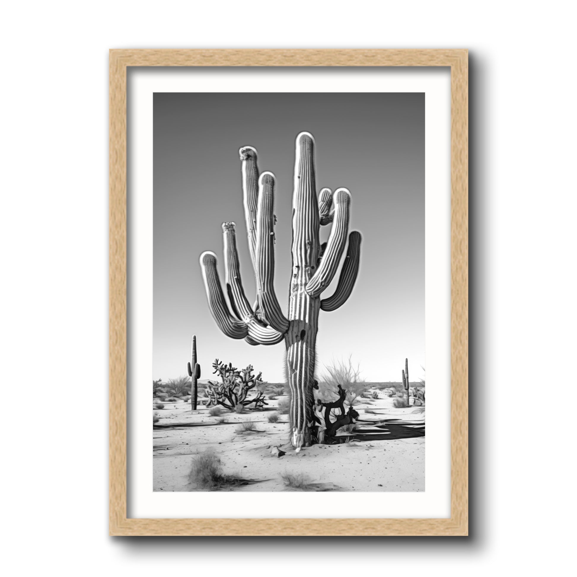 Black & White Photograph of a saguaro cactus in the Arizona desert.