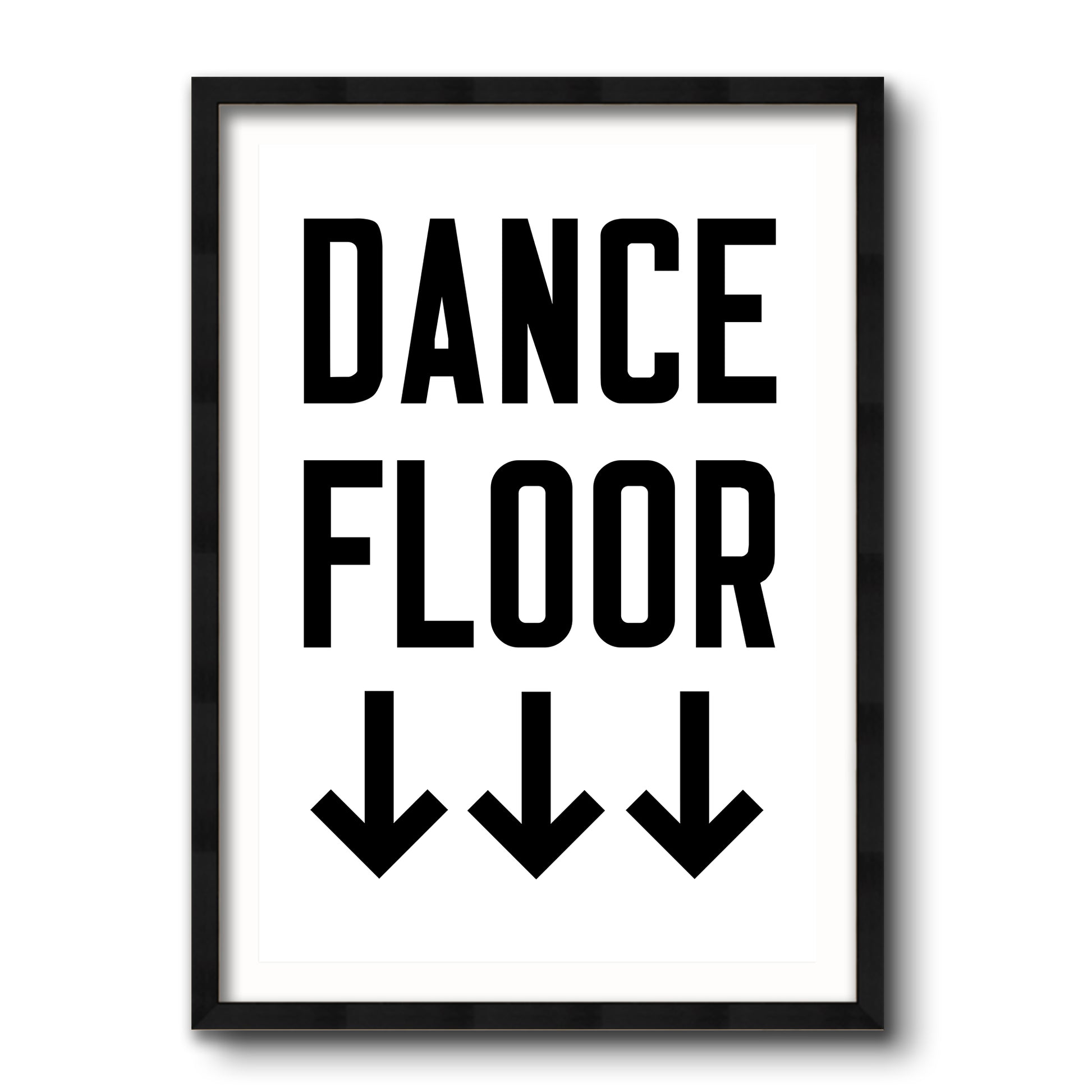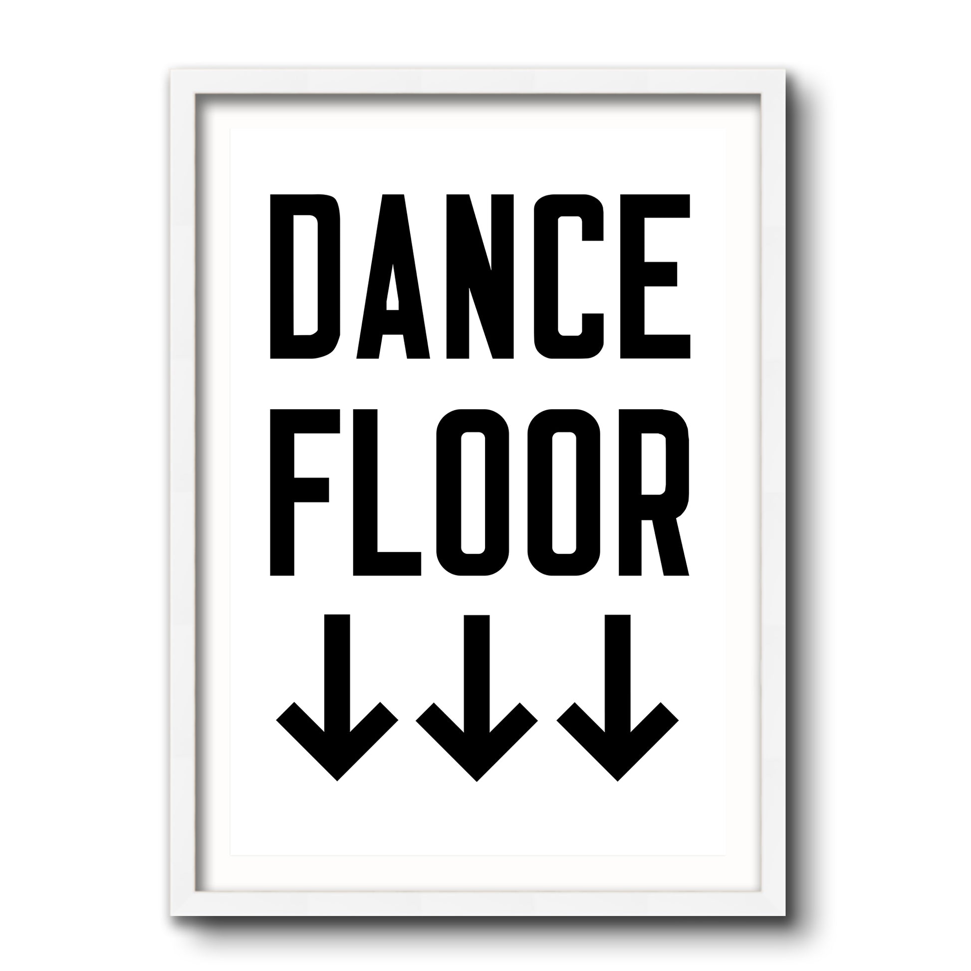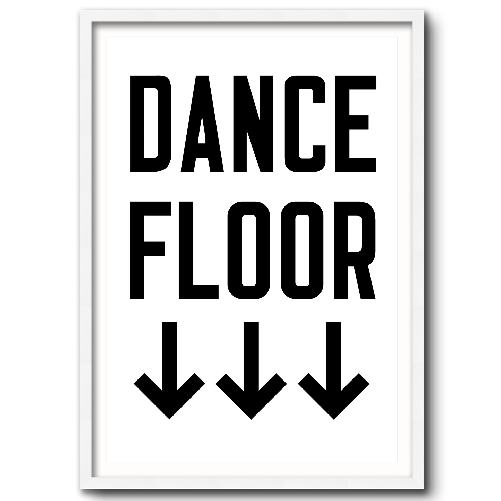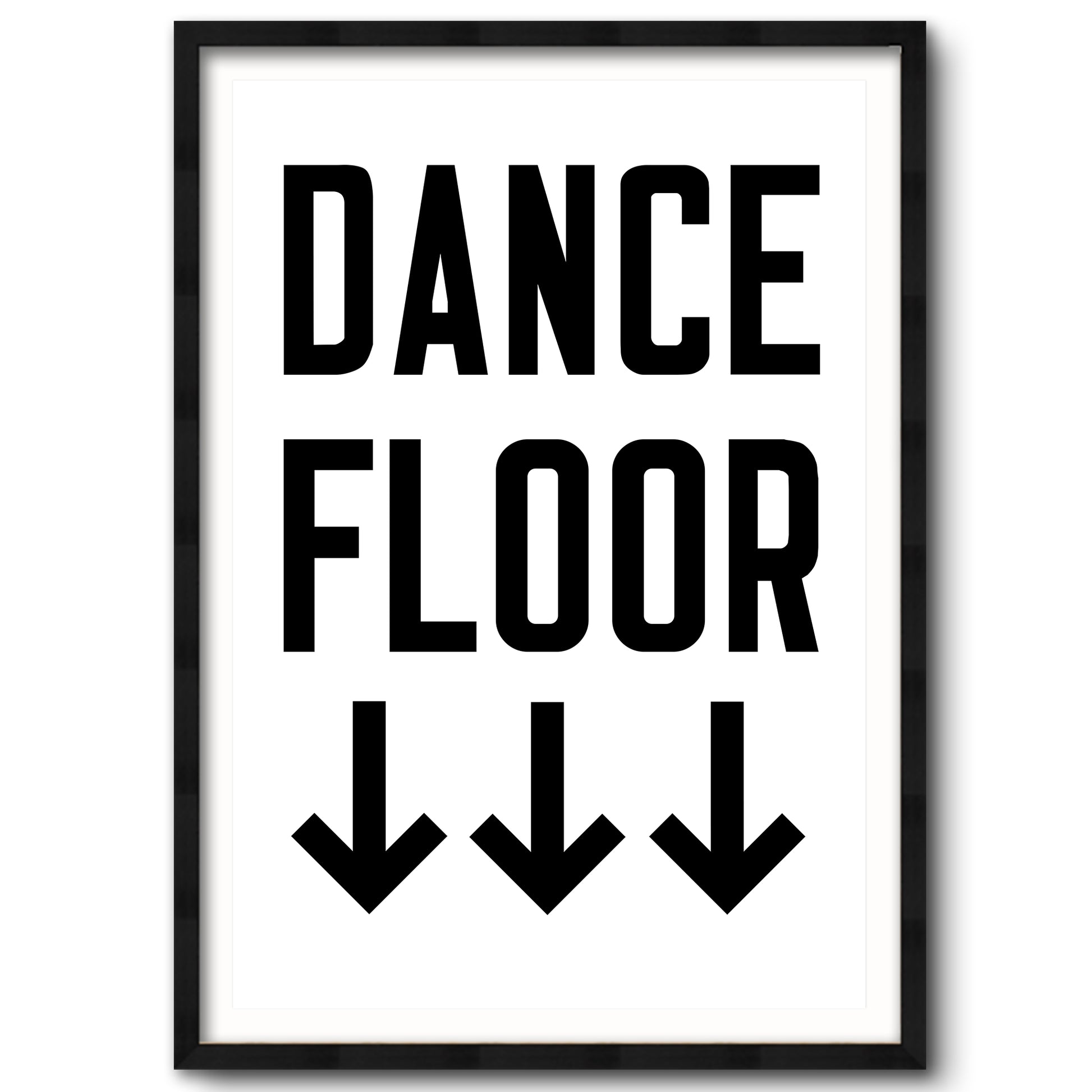 Dance Floor sign print with arrows pointing downward. Liven up your boring walls and encourage good vibes with this fun & playful typography art.