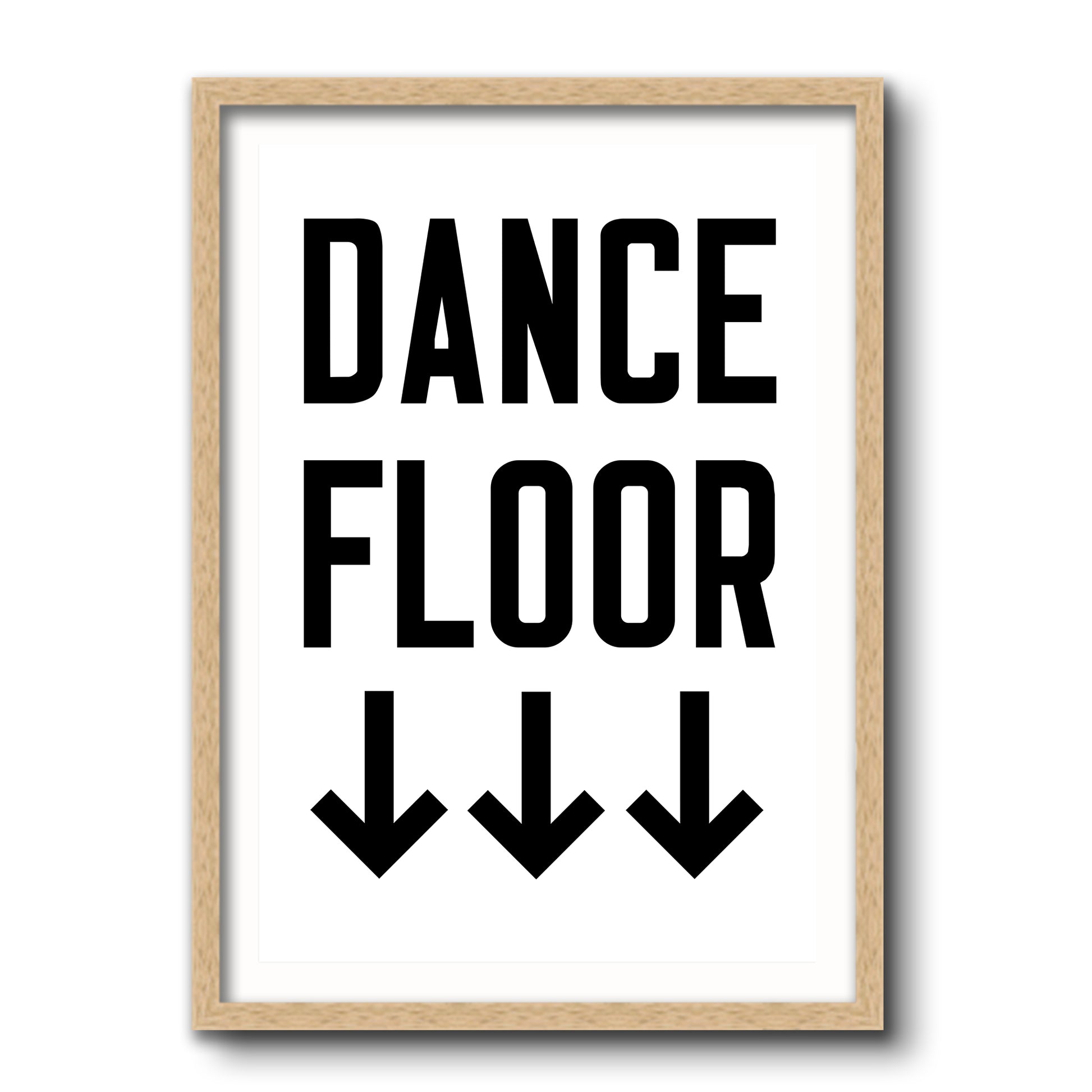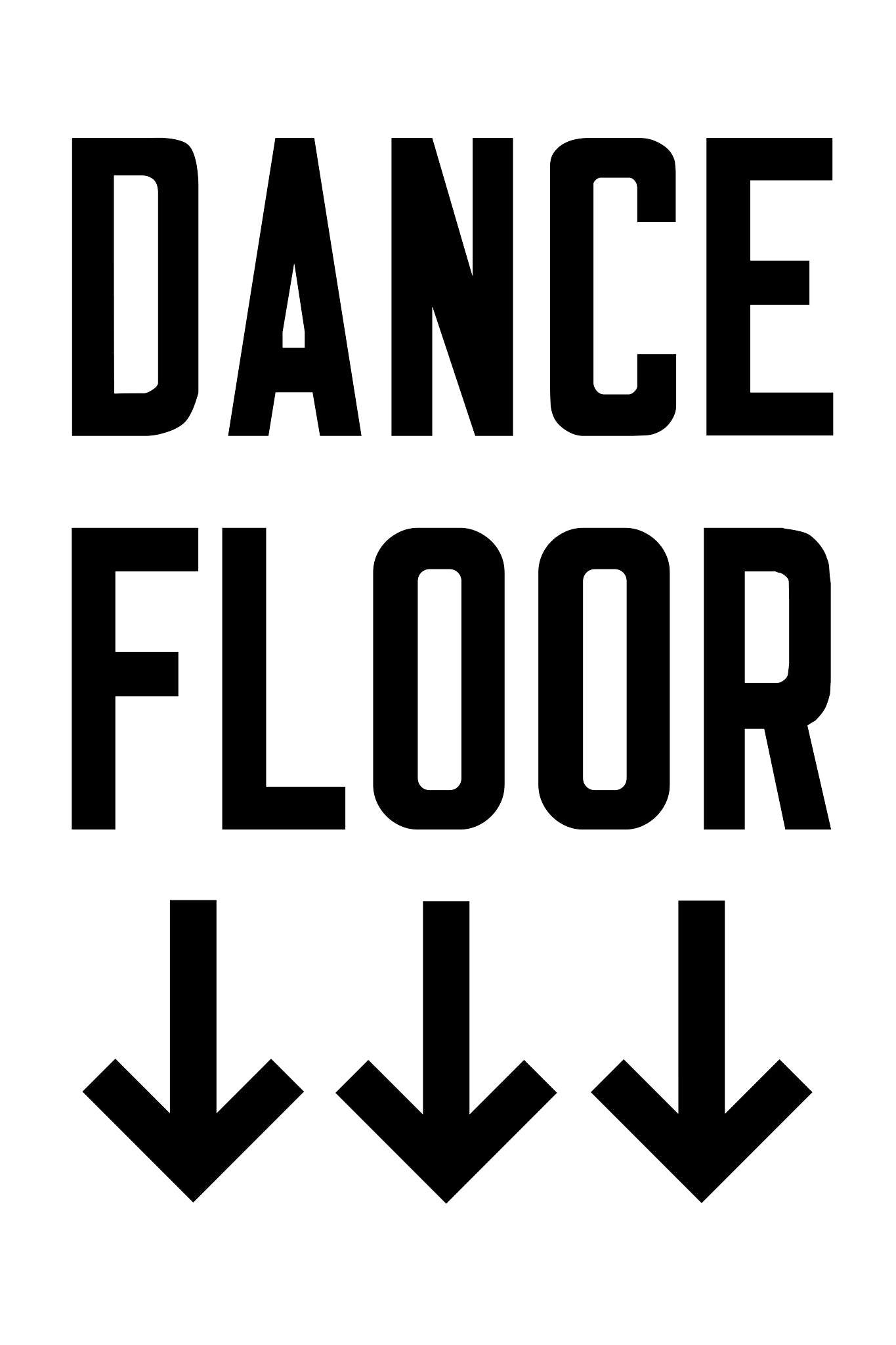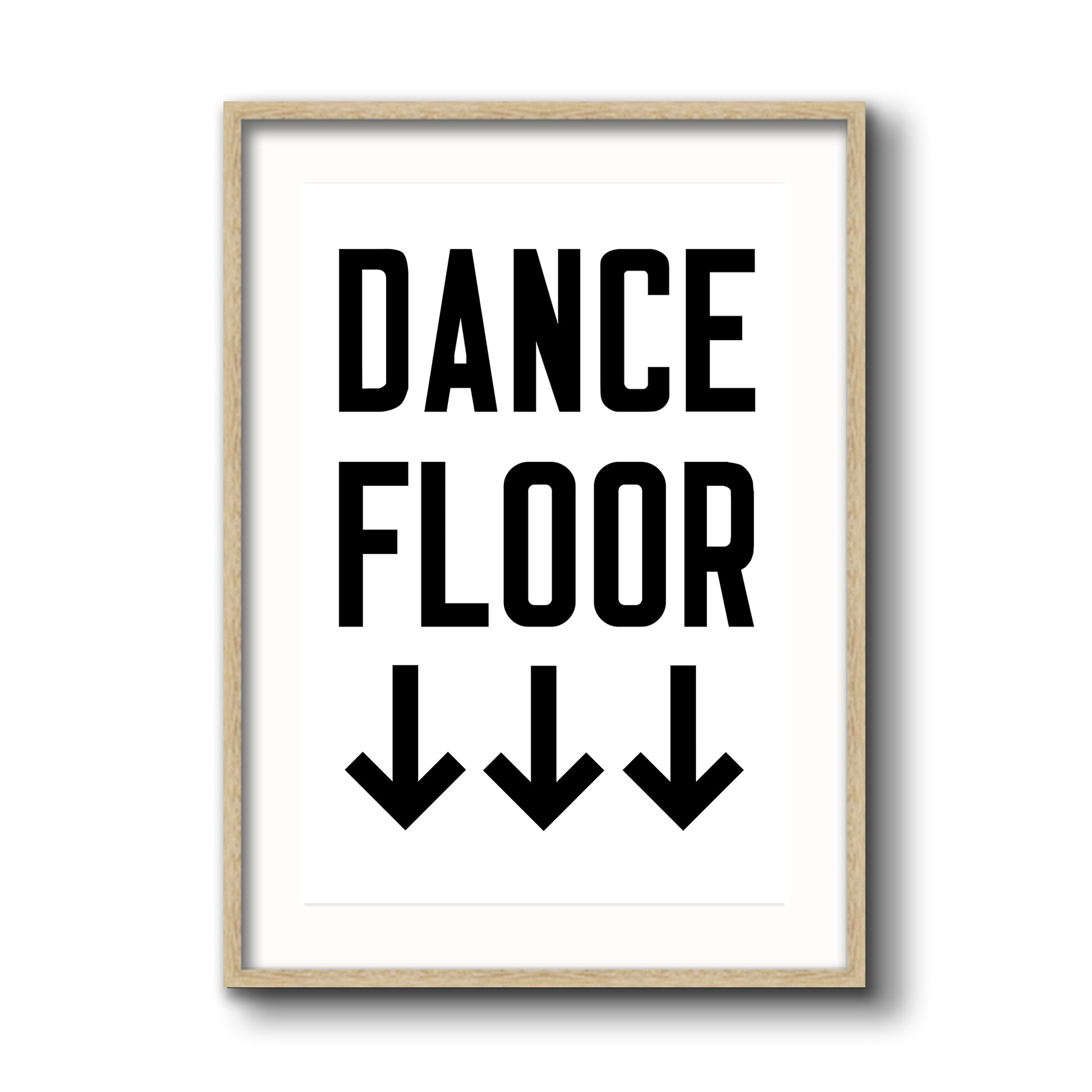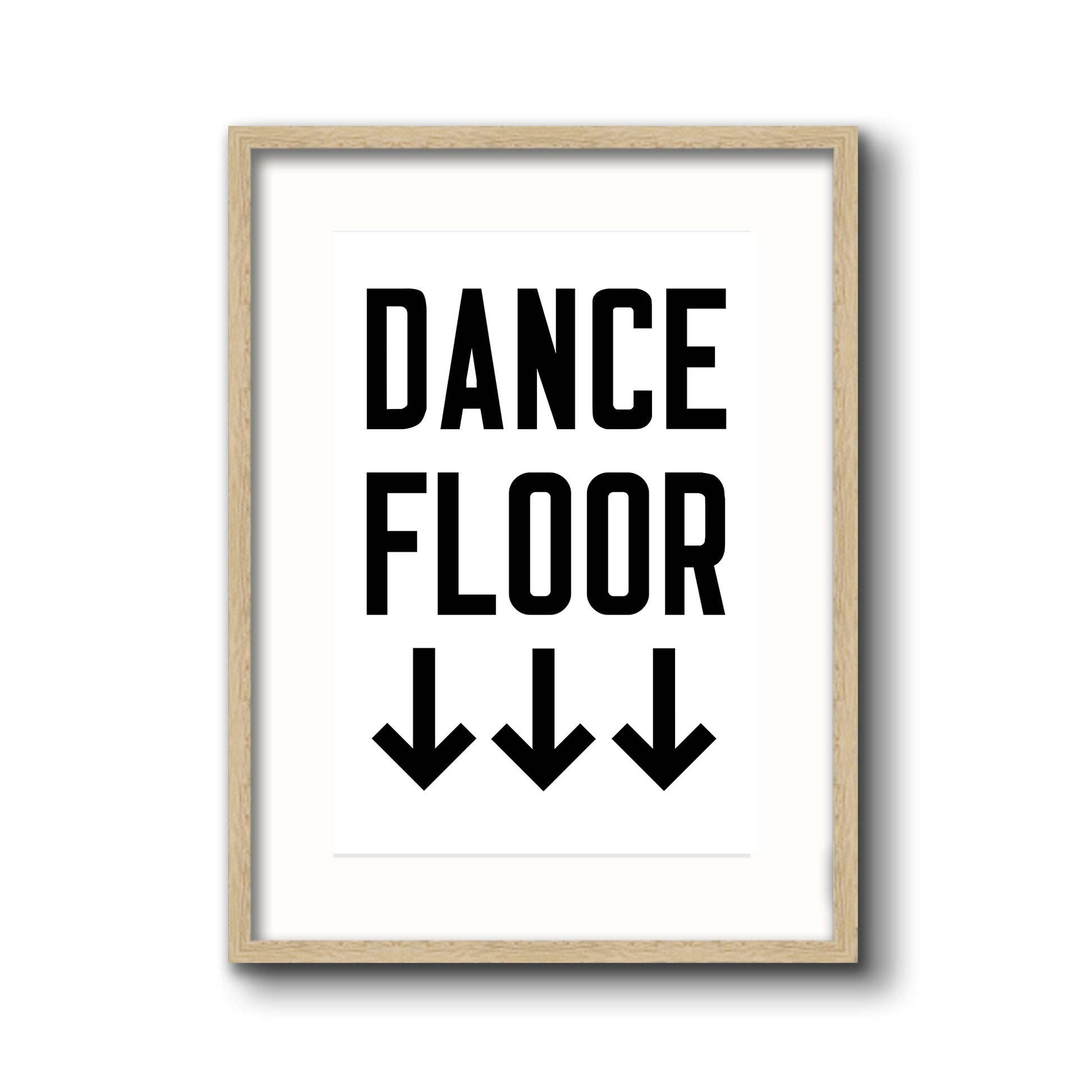 Dance Floor sign print with arrows pointing downward. Liven up your boring walls and encourage good vibes with this fun & playful typography art.